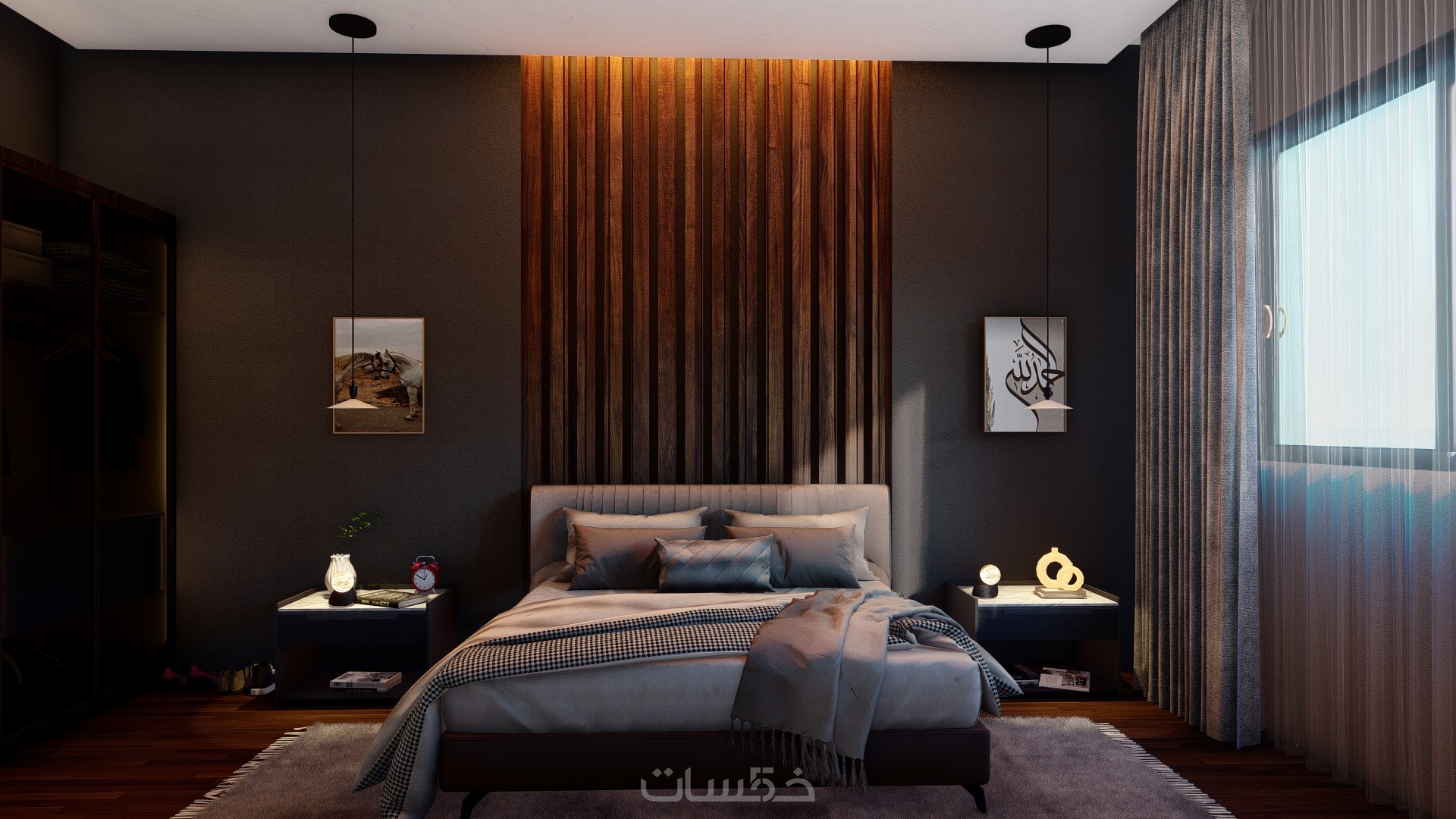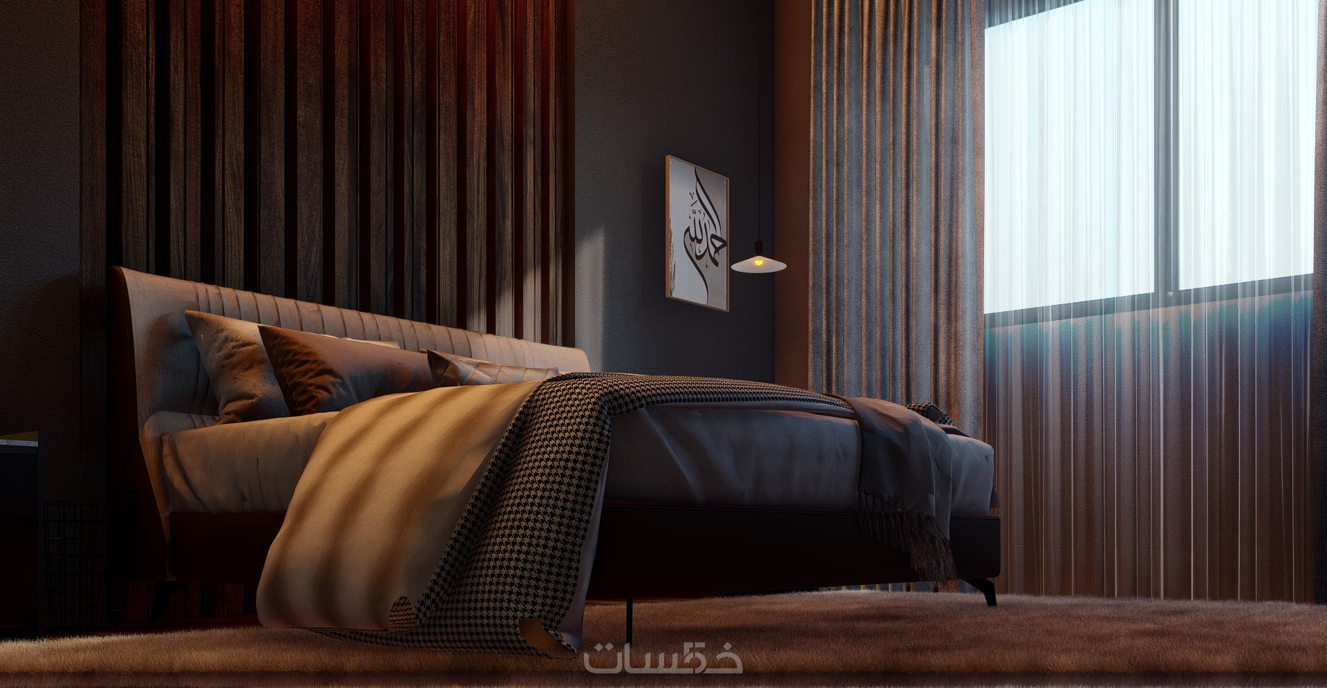 غرف النوم الرئيسية مصممة بالستيل المودرن البسيط و بها تجاليد