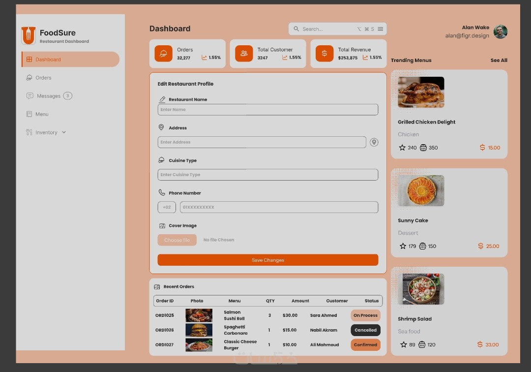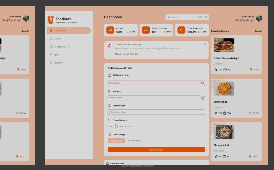 تصميم داشبورد لإدارة موقع باستخدام فيجما Design dashboard