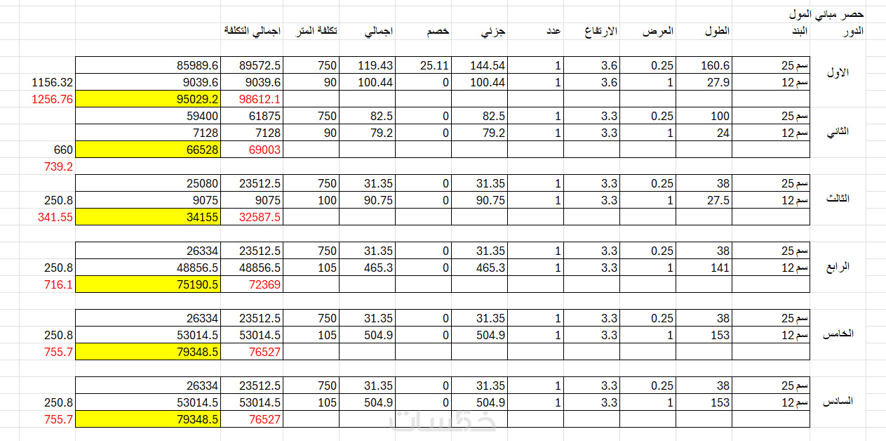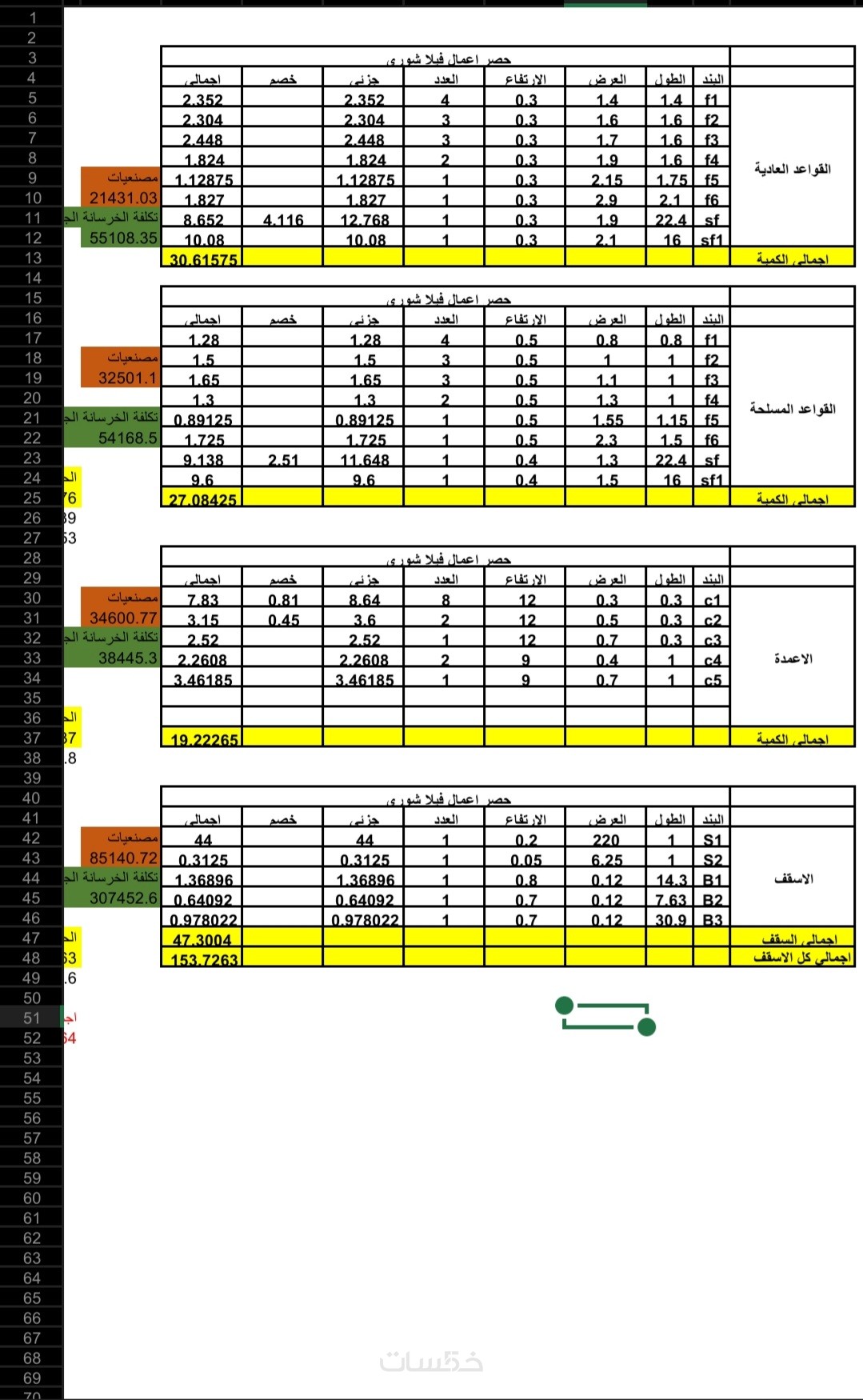 حصر كميات الخرسانات للمباني السكنية والفيلات والمولات
