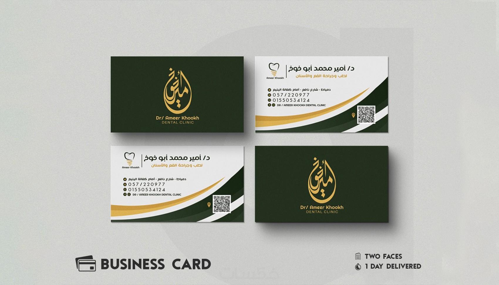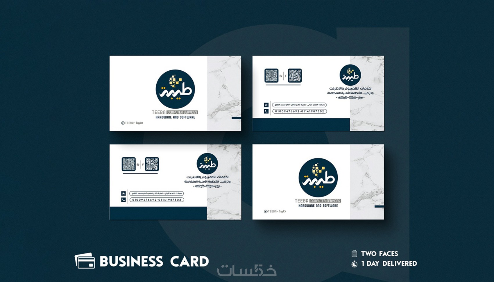 تصميم كارت عمل ذكي, business card باحترافية واضافة QR Code