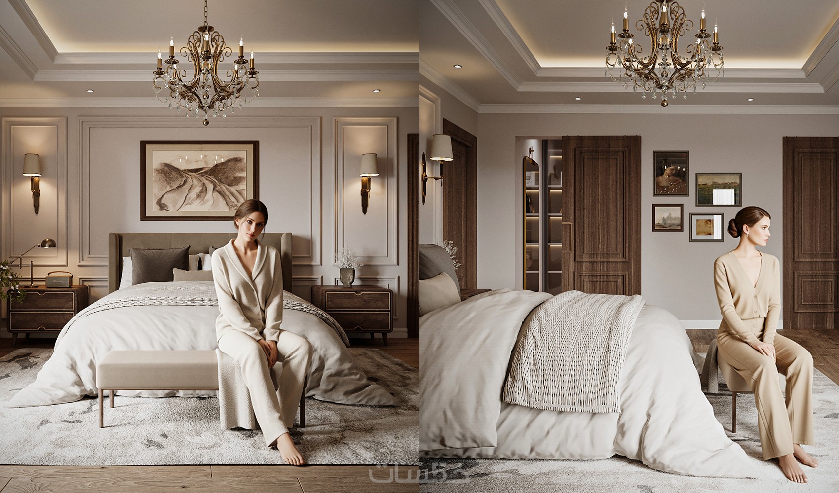 تصميم ديكور غرفة نوم مودرن للبنات بتصور واقعي واحترافي