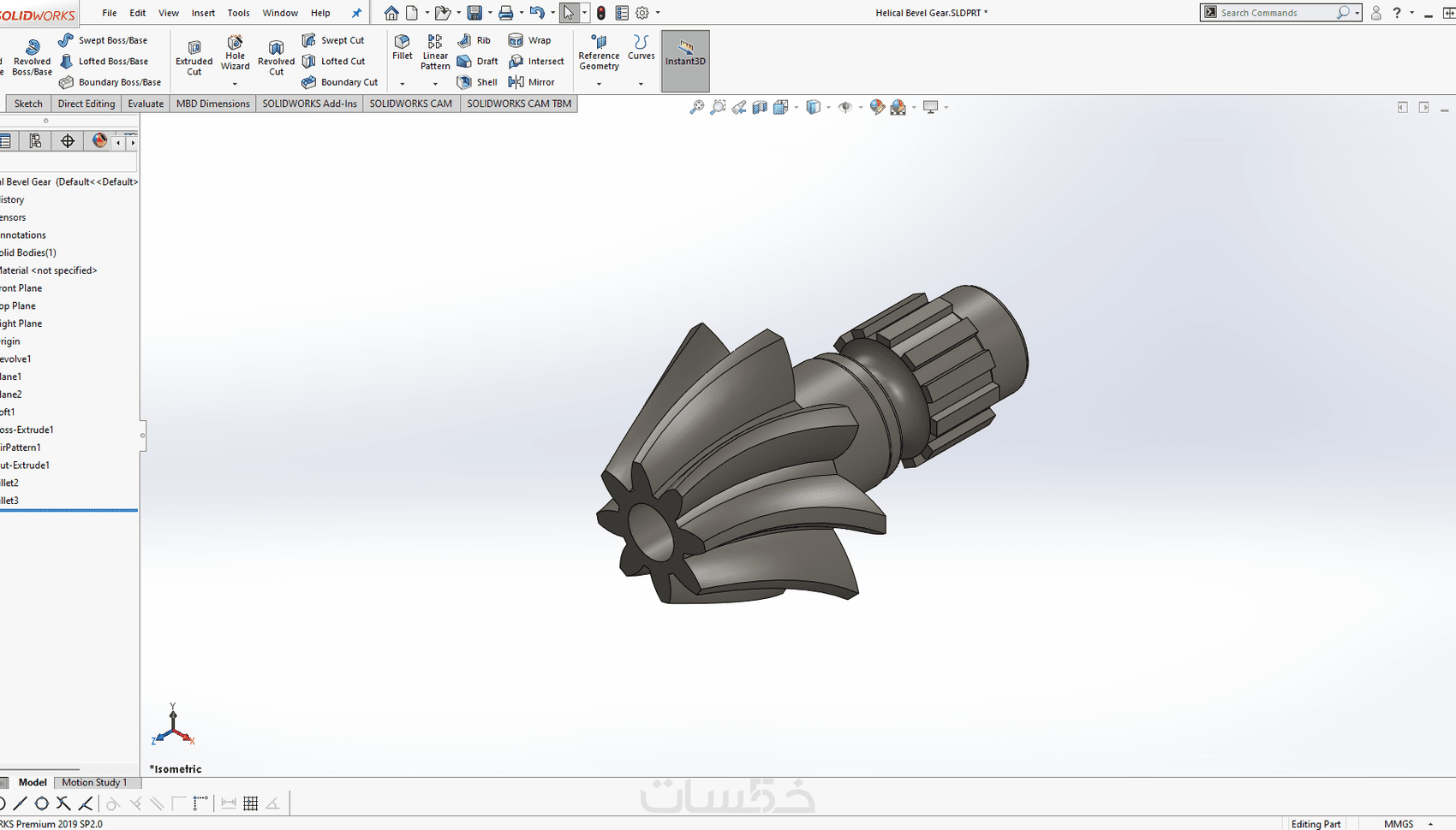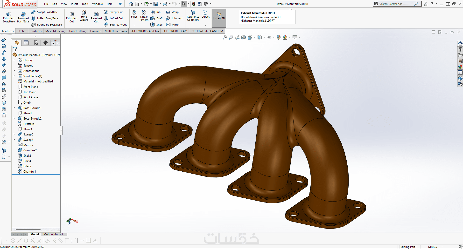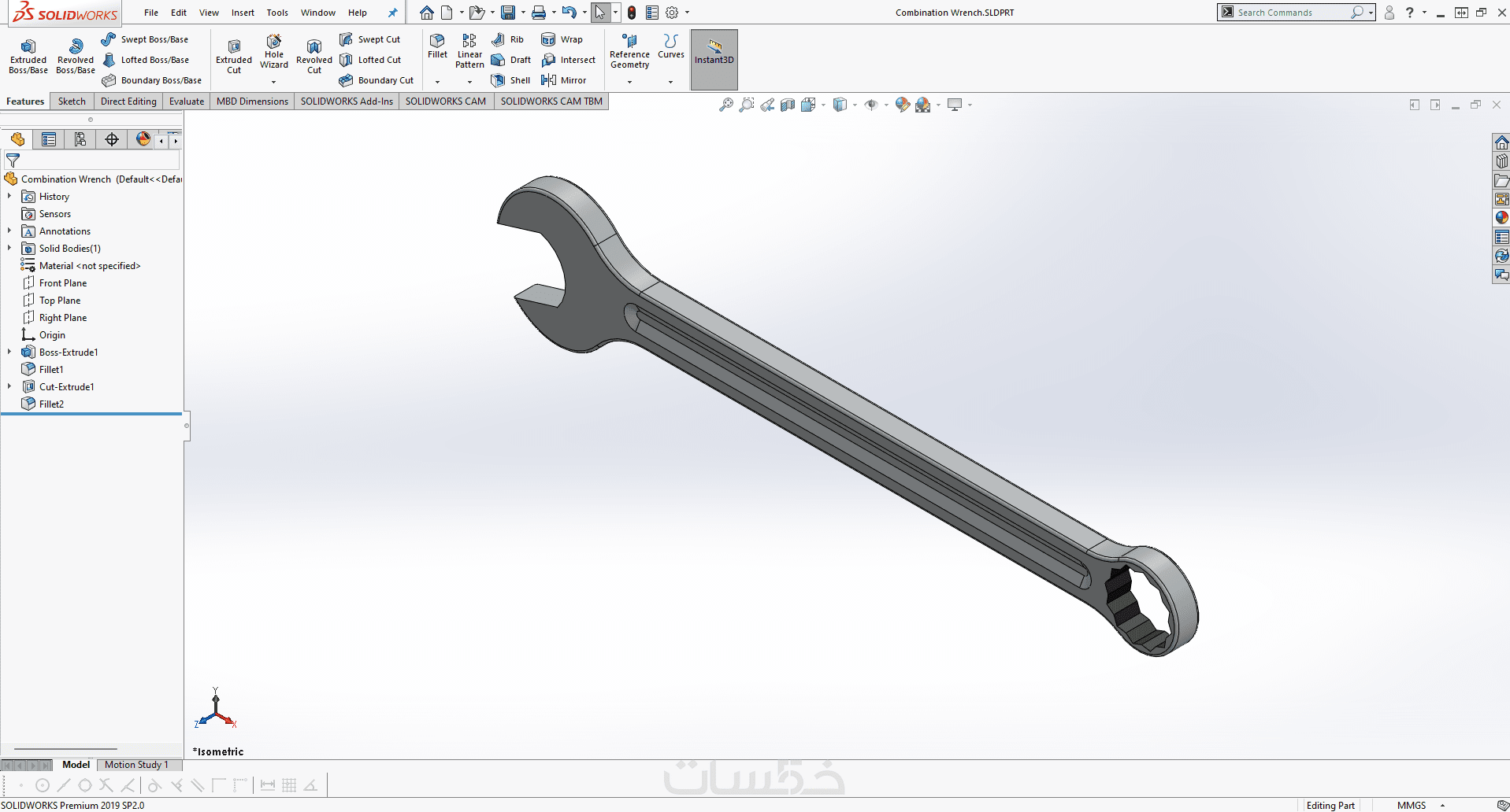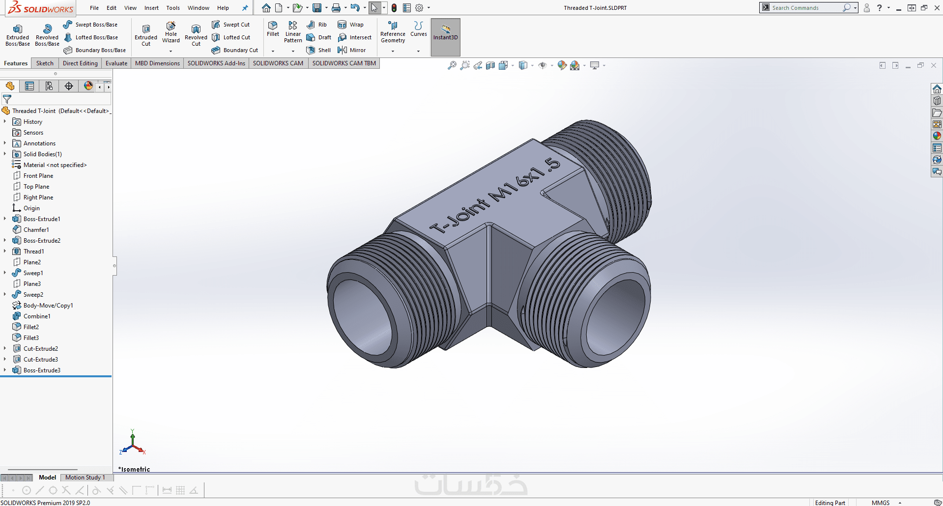 تصميم القطع والأجزاء ثلاثية الأبعاد (3D) بإستخدام Solidworks