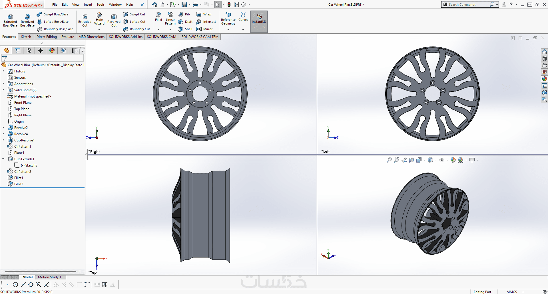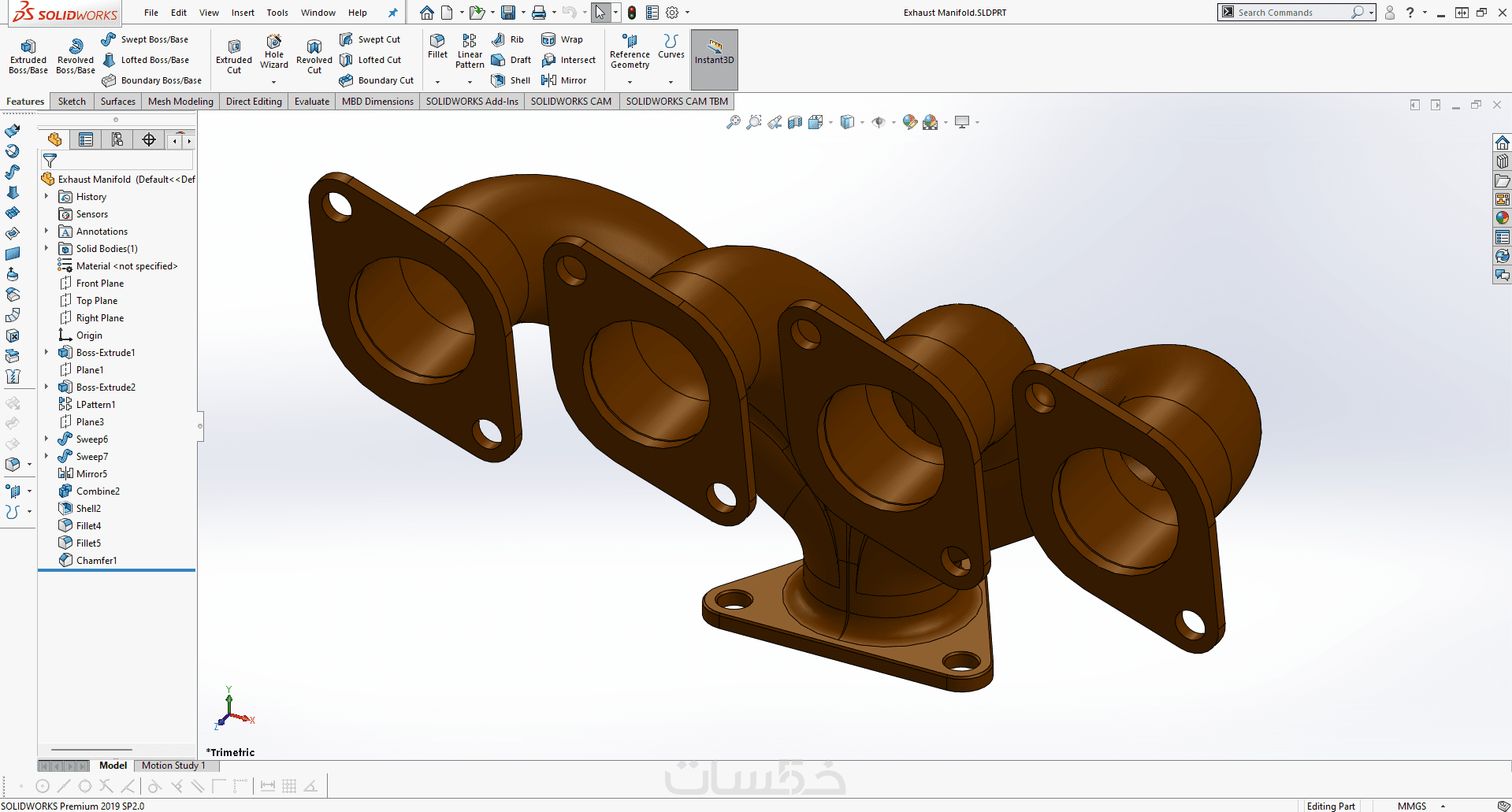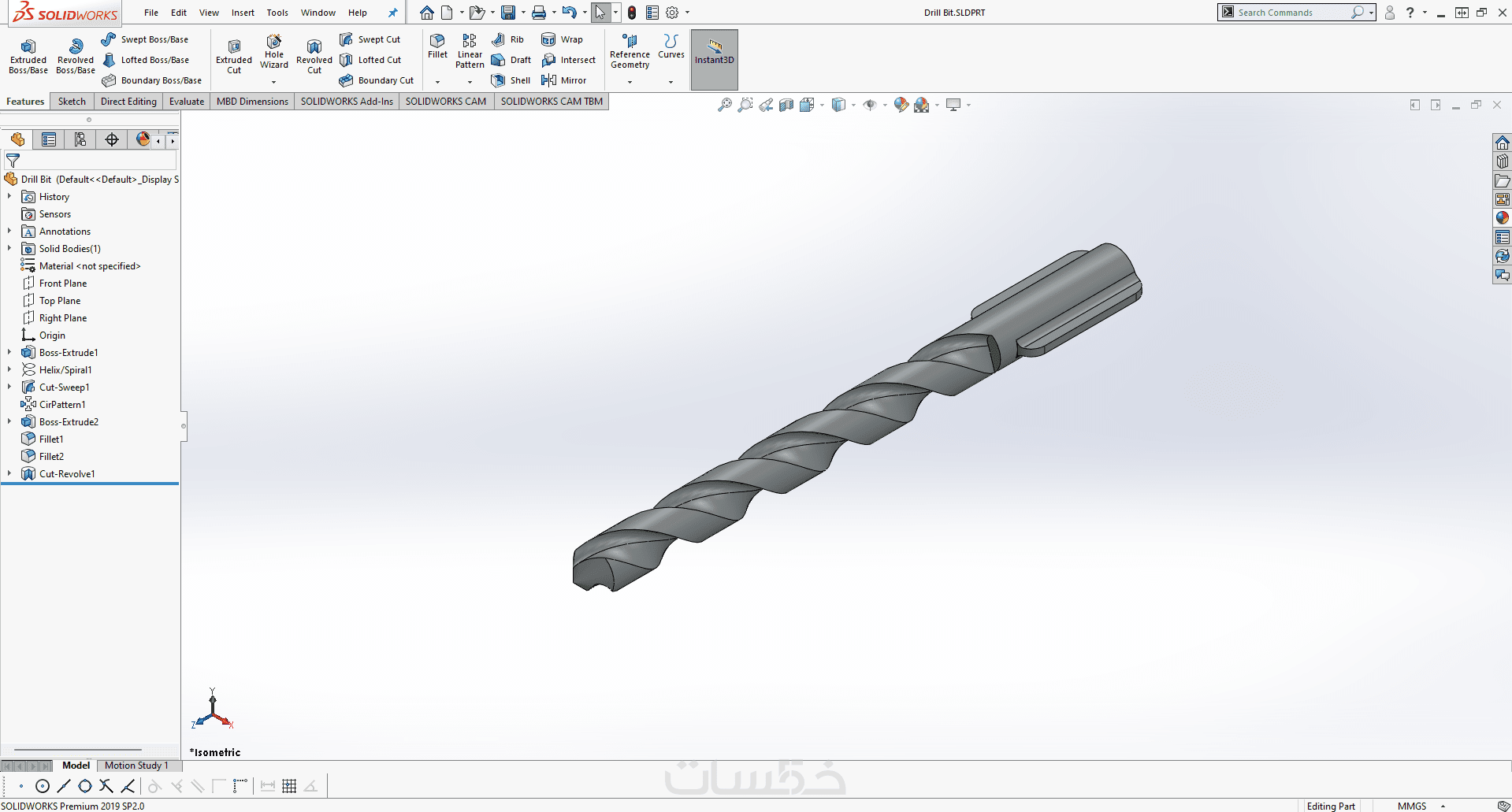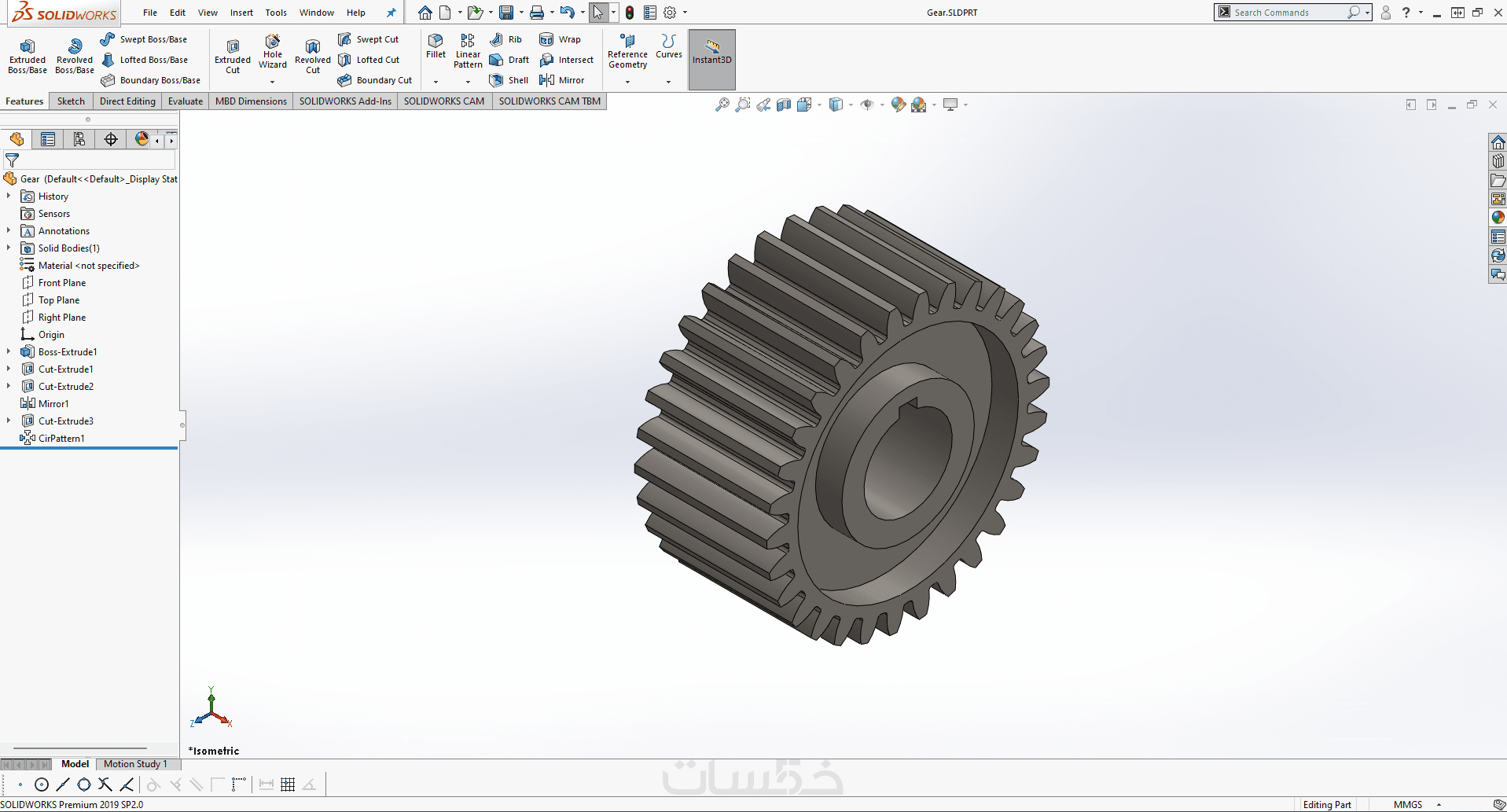 تصميم القطع والأجزاء ثلاثية الأبعاد (3D) بإستخدام Solidworks