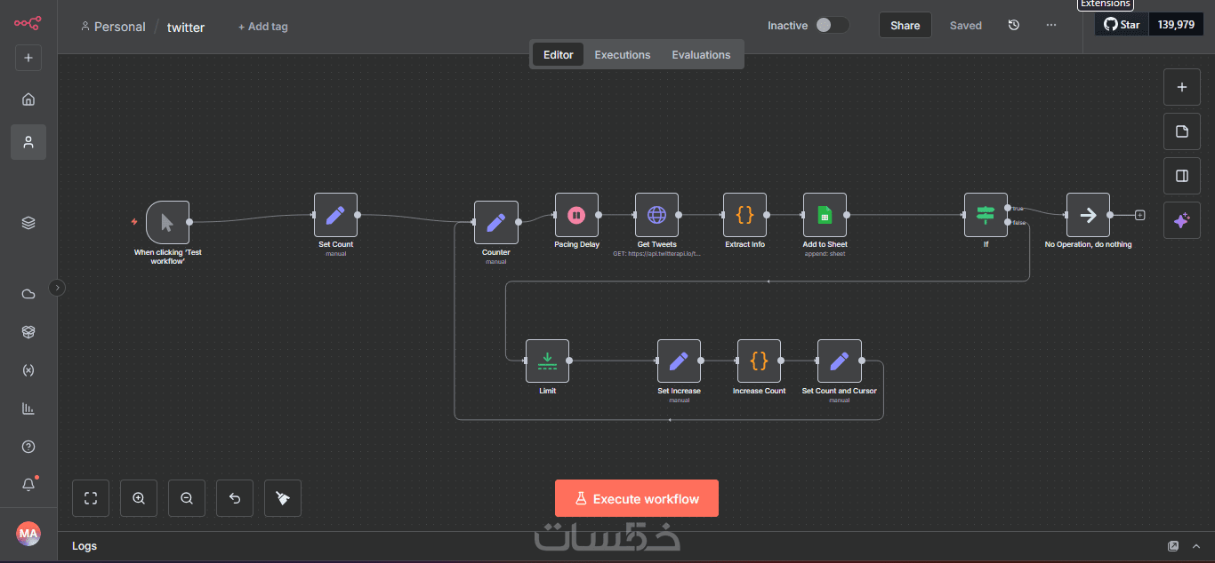 أتمتة جمع تغريدات تويتر وتخزينها في Google Sheets ب n8n
