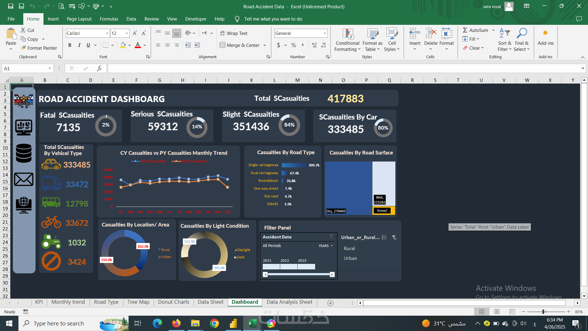 اعداد ملف اكسيل مع داشبورد تفاعلية Excel