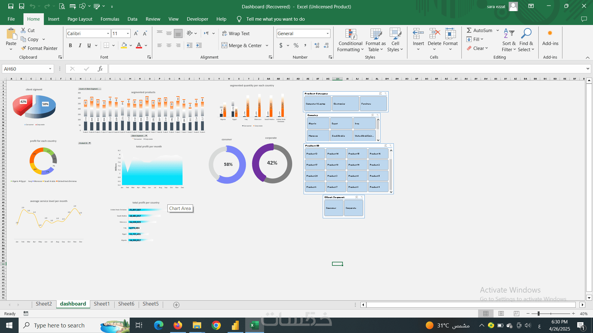بناء داشبورد تفاعليه تخدم مطلبات العميل