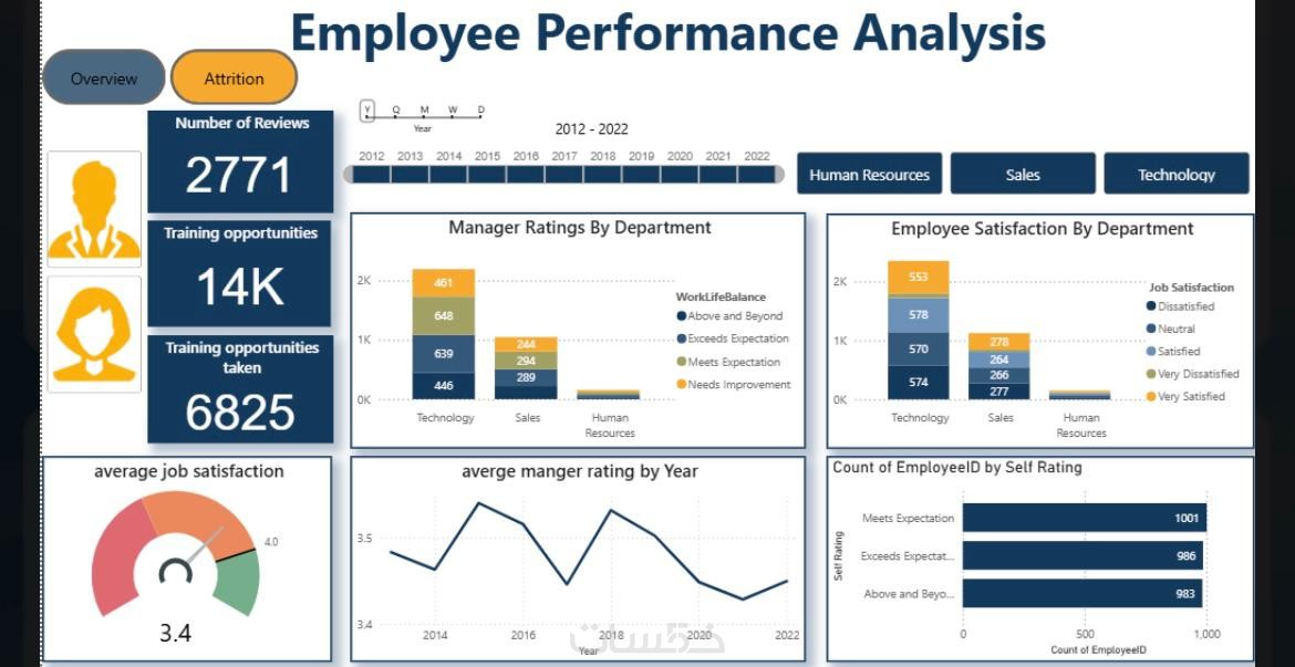 لوحات تفاعليه لقياس الاداء على برنامج Power BI أو Tableau