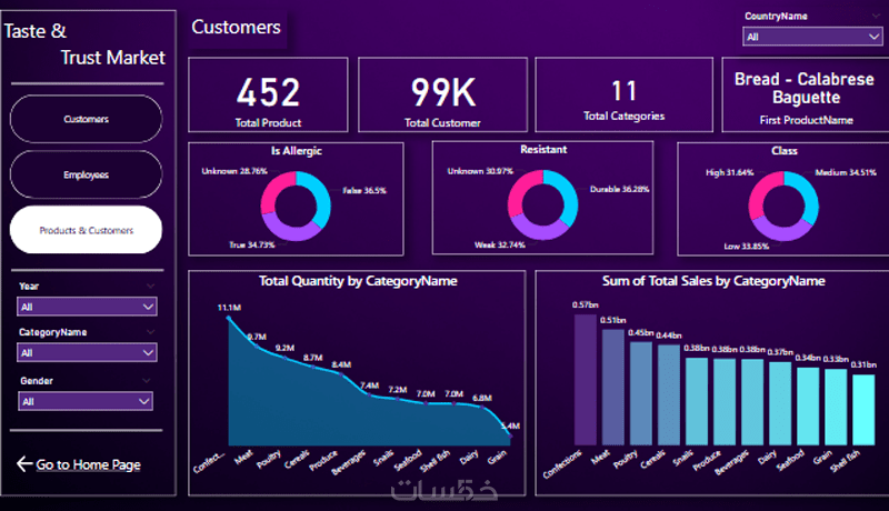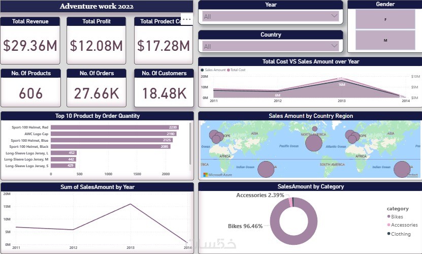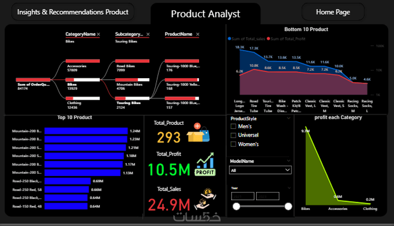 لوحه تفاعليه علي power bi عن متجر لبيع المنتجات