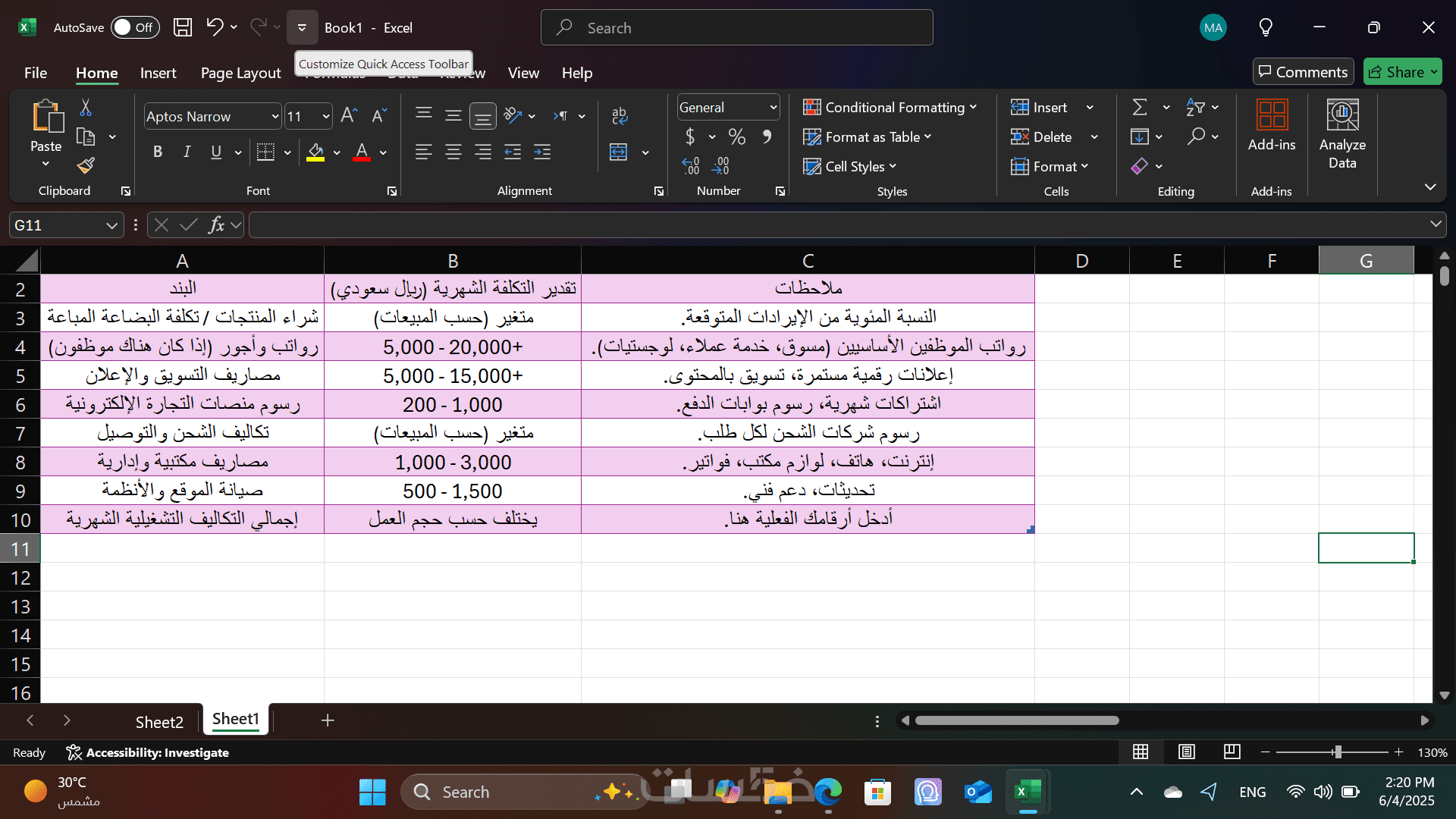 خدمات محاسبة واعداد قوائم مالية باستخدام الاكسل
