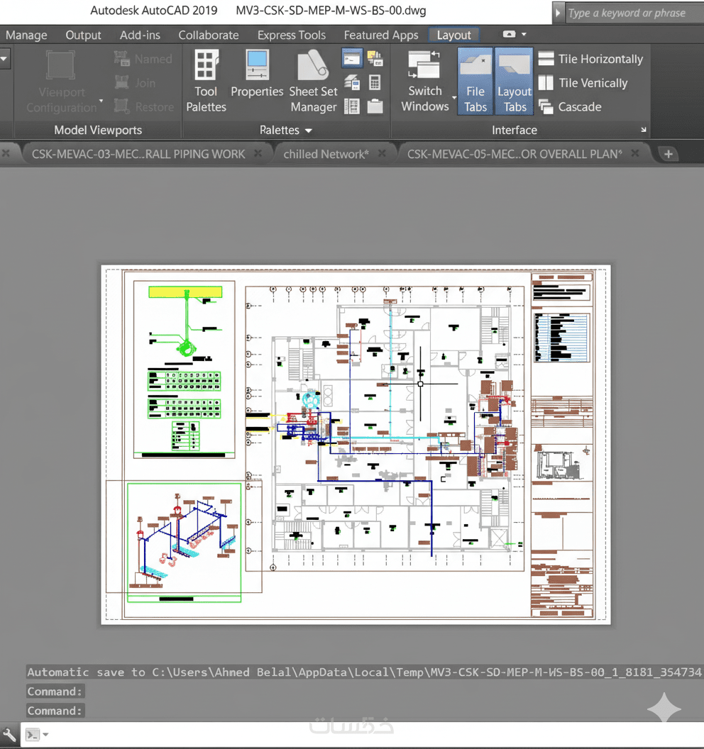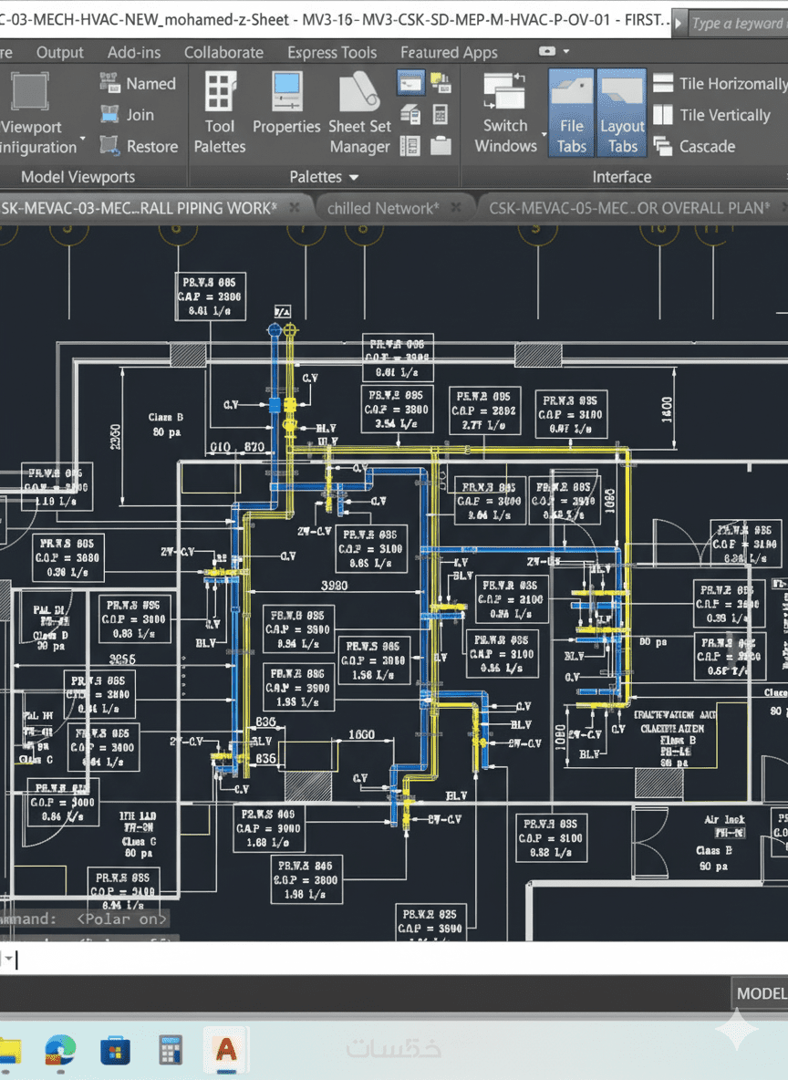 رسم وتصميم لوحات أتوكاد في مجال التكييف والحريق والصرف الصحي