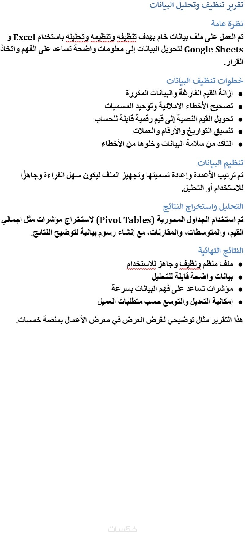 تنظيف وتحليل وإدارة البيانات وعرضها بشكل مرئي وكتابة تقارير