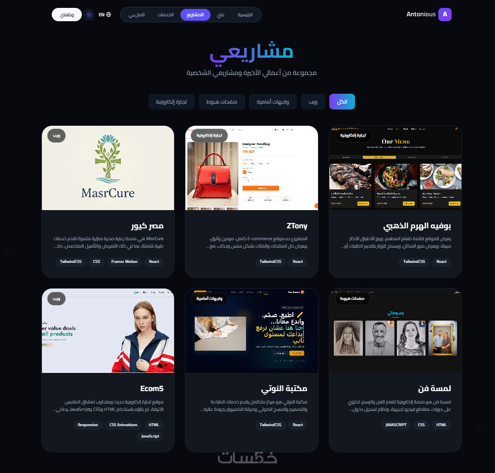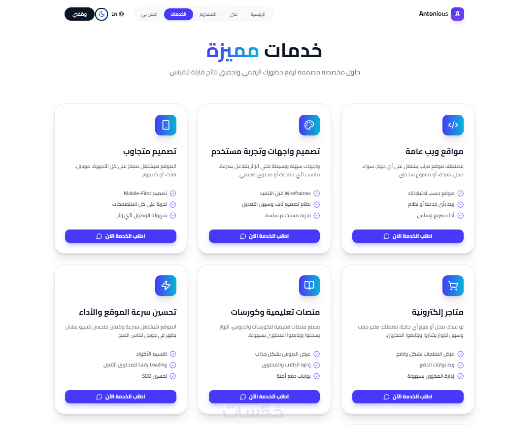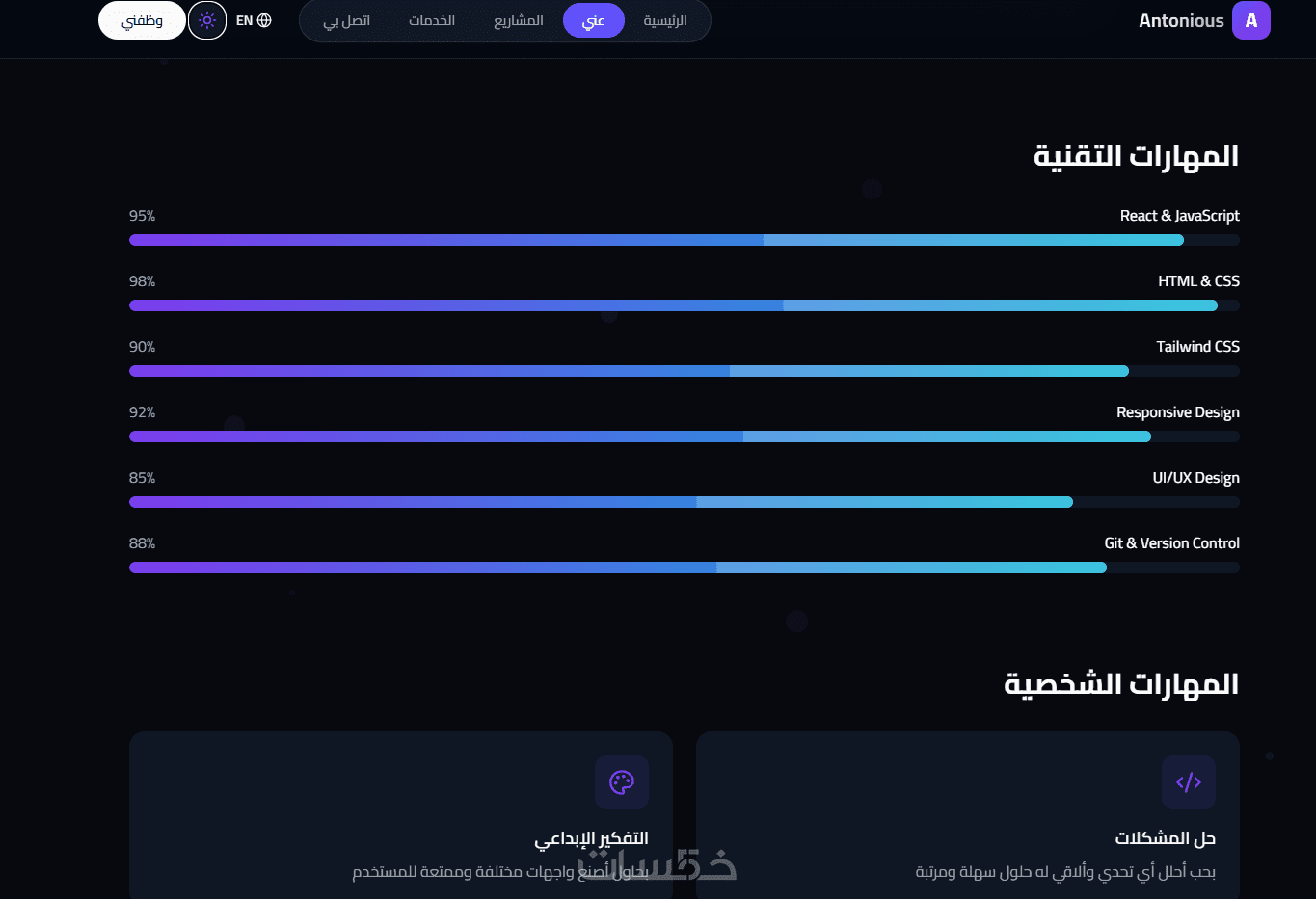 برمجة موقع بورتفوليو شخصي احترافي لعرض المهارات والمشاريع