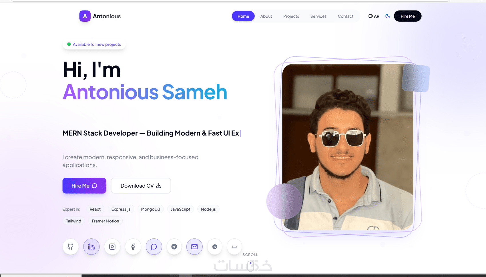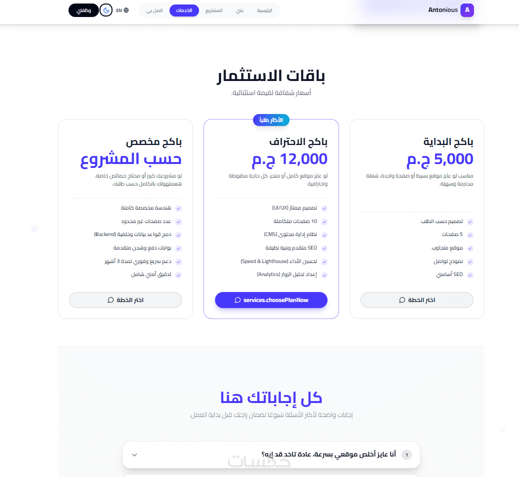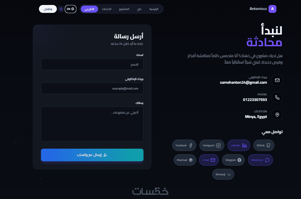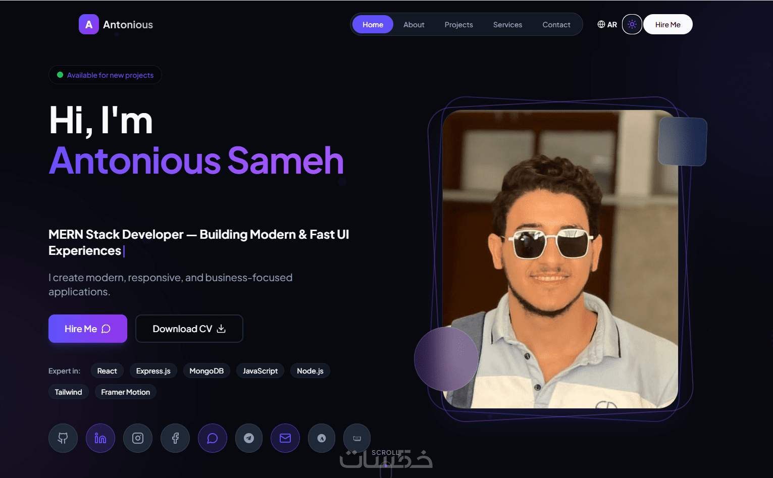 برمجة موقع بورتفوليو شخصي احترافي لعرض المهارات والمشاريع