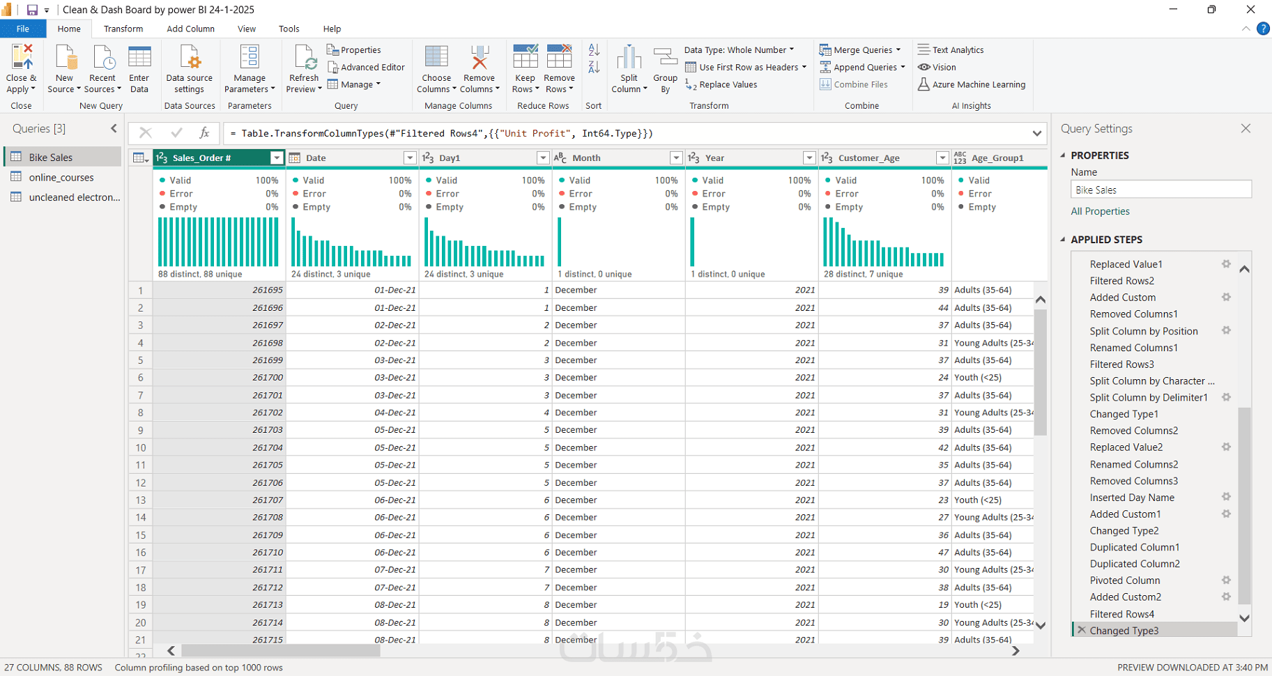 تنظيف وتهيئة البيانات من خلال الاكسل وباور بي آي