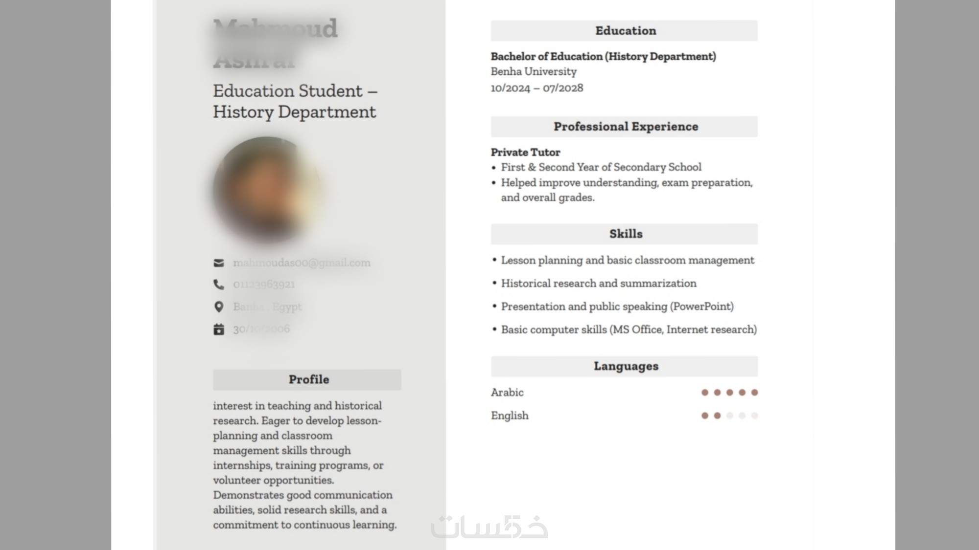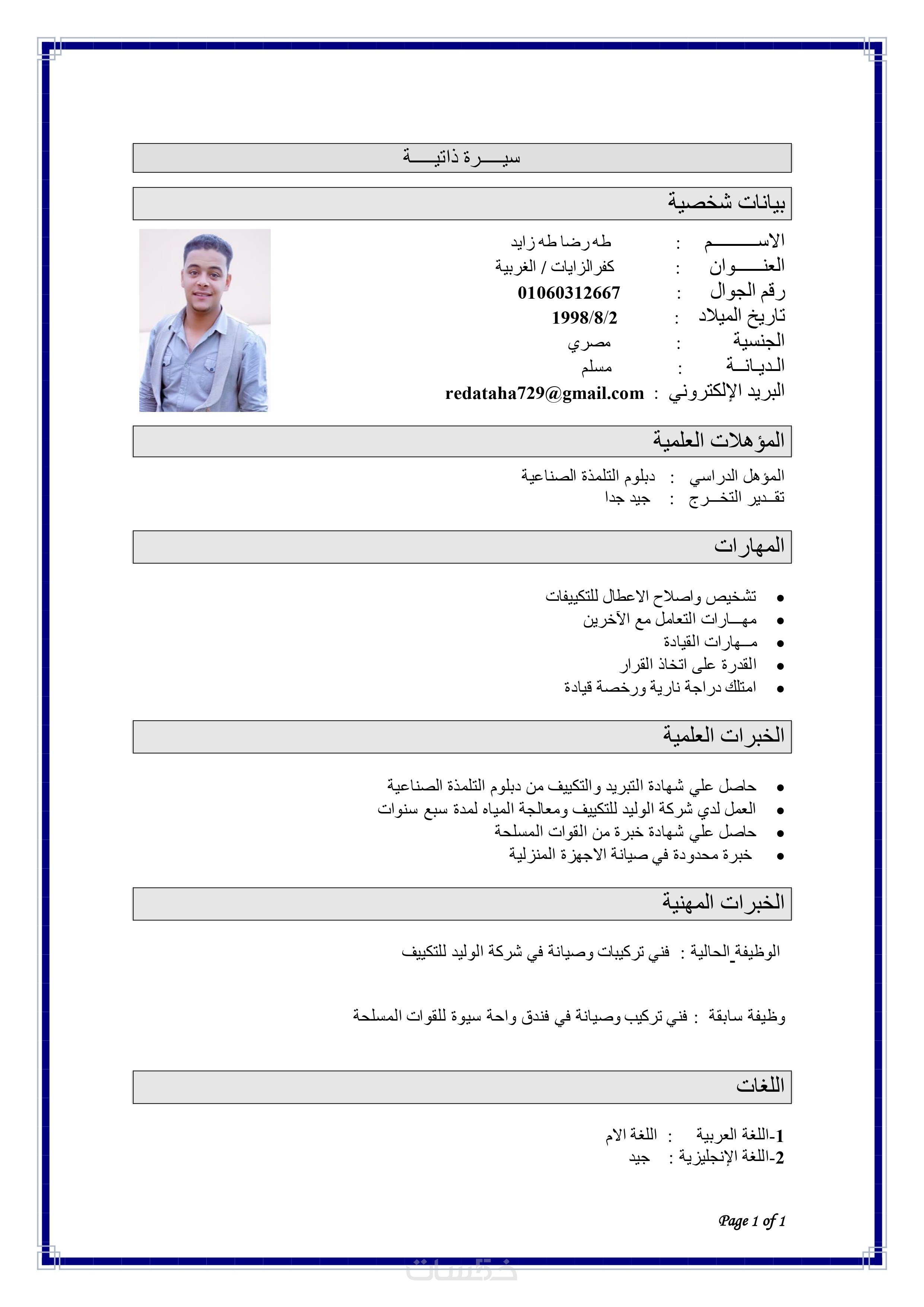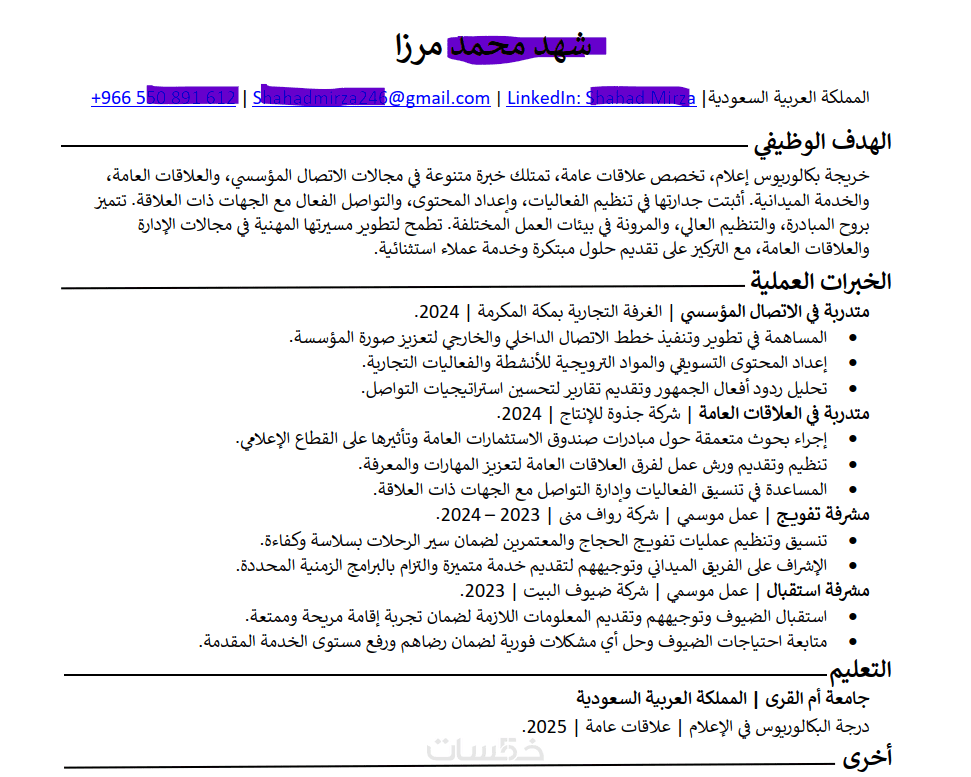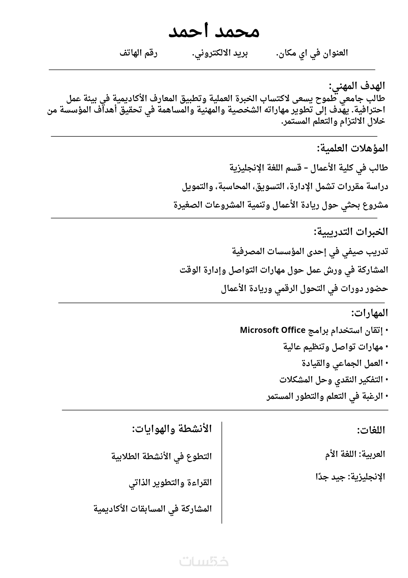 كتابة سيرة ذاتية رسمية باللغتان العربية والانجليزية