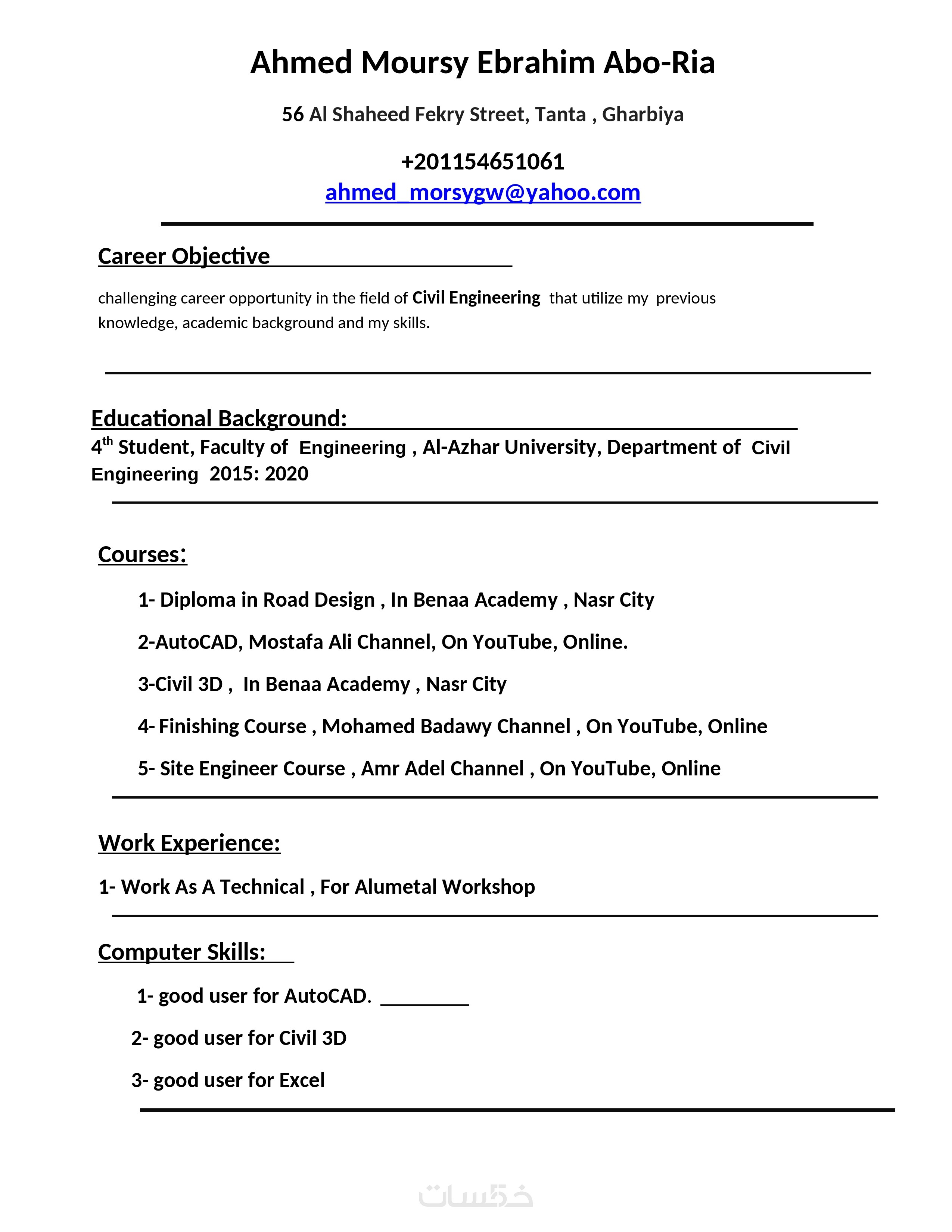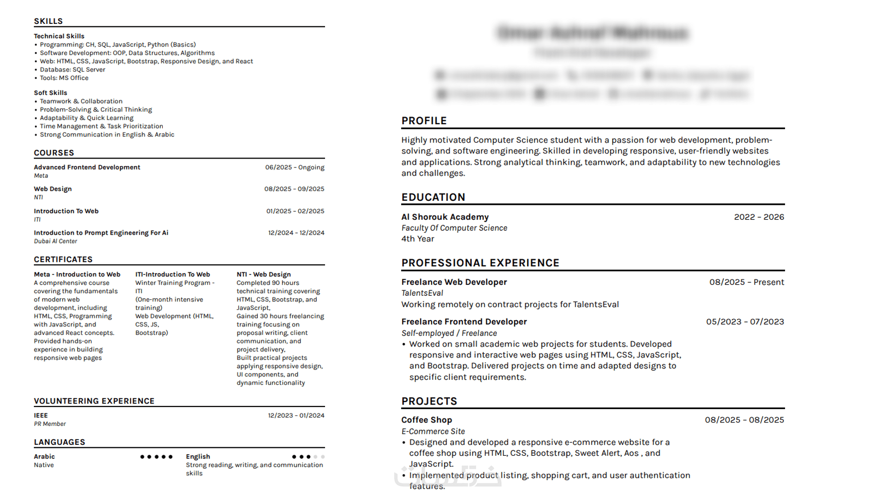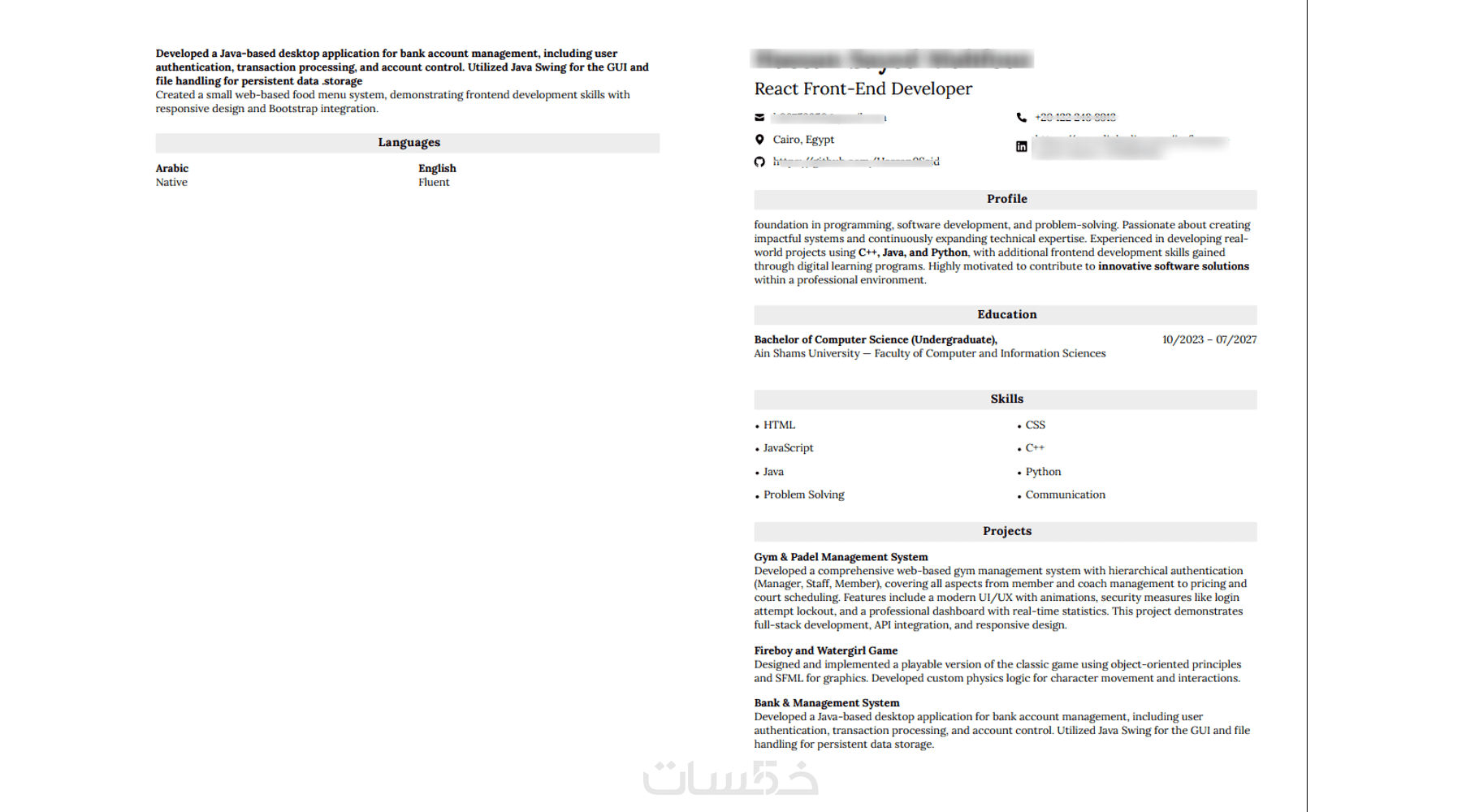 كتابة سيرة ذاتية رسمية باللغتان العربية والانجليزية