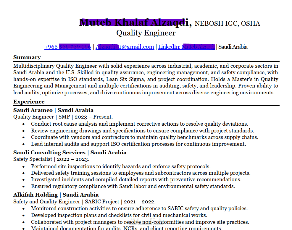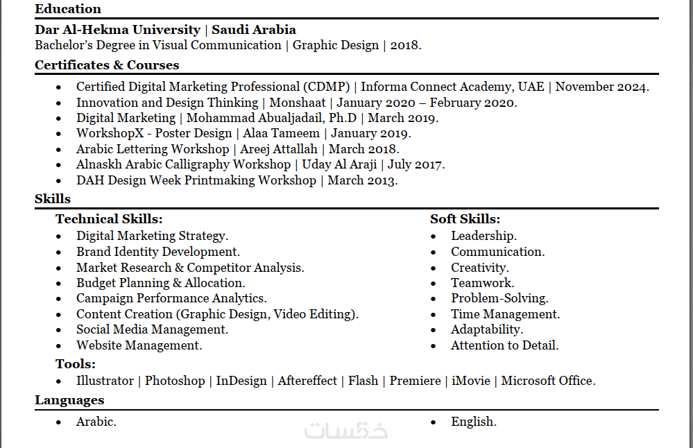 انشاء وتصميم سيرة ذاتية باللغة الانجليزية والعربية بنظام ATS