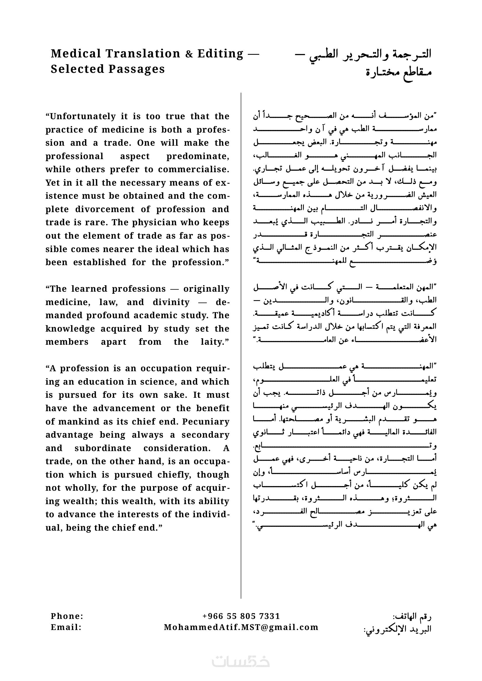 ترجمة طبية احترافية من الانكليزية للعربية والعكس
