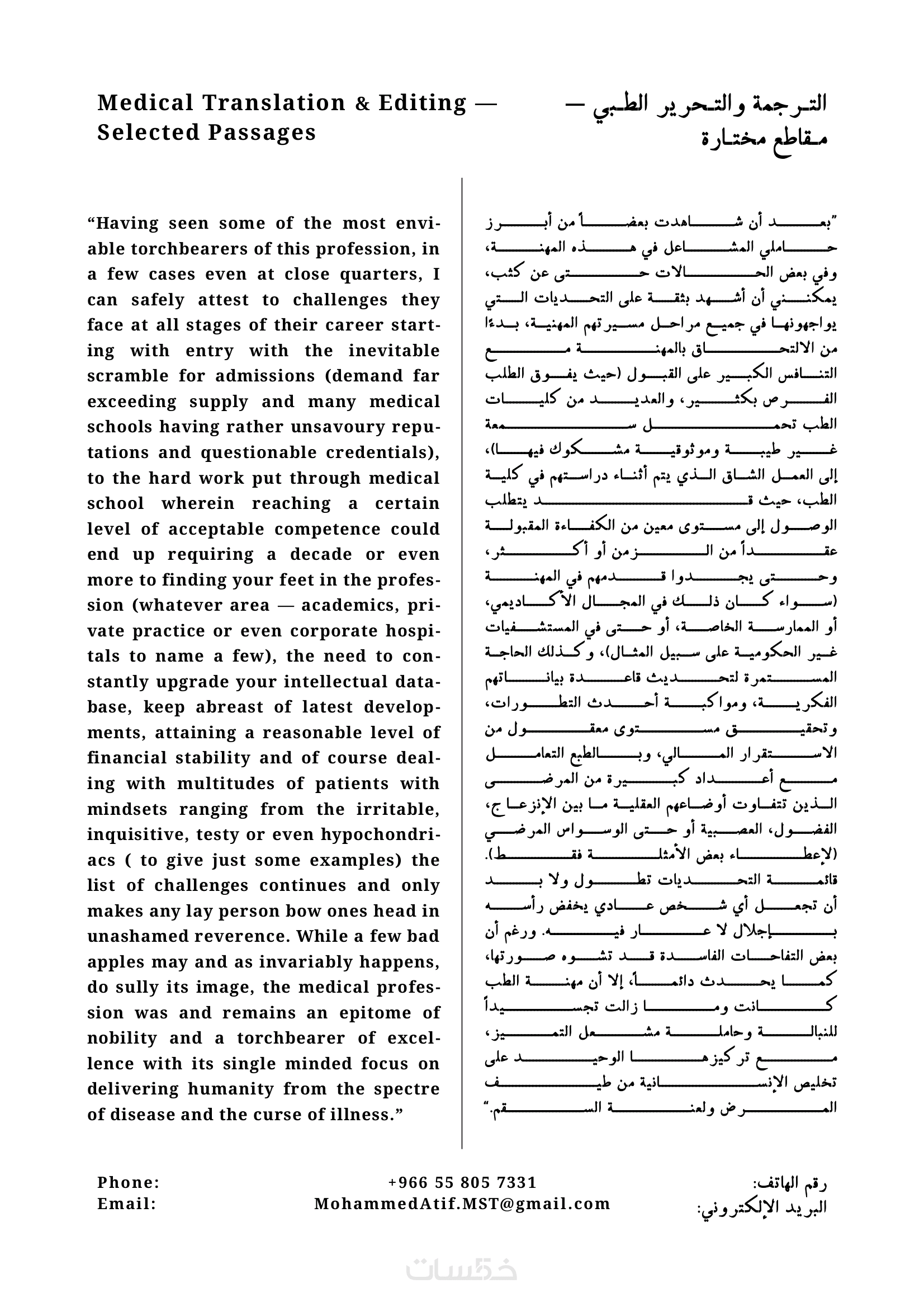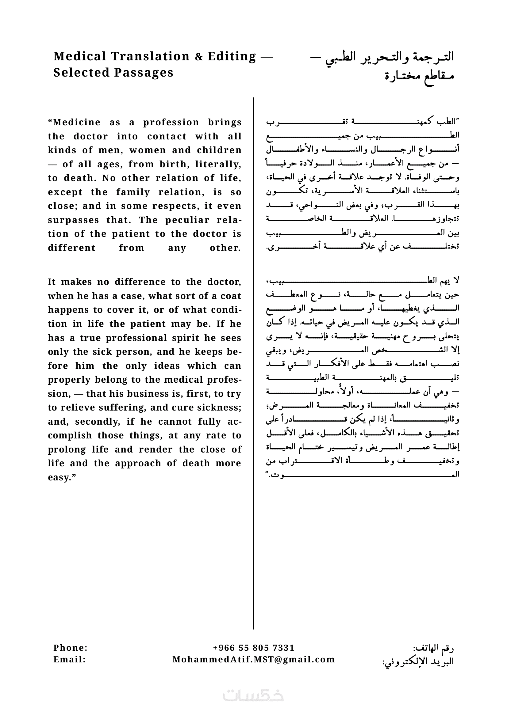 مراجعة وتعديل لغوي لـصفحات طبية إنسانية