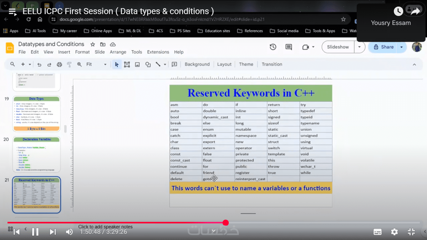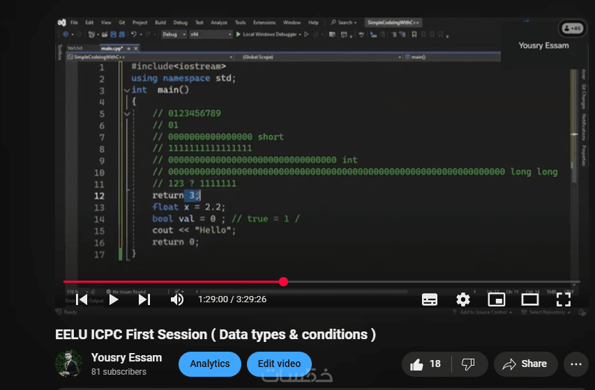 جلسات فردية لتعلم أساسيات لغة ++C