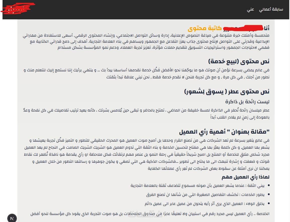 موقع شخصي-معرض اعمال -بورتفوليو إلكتروني