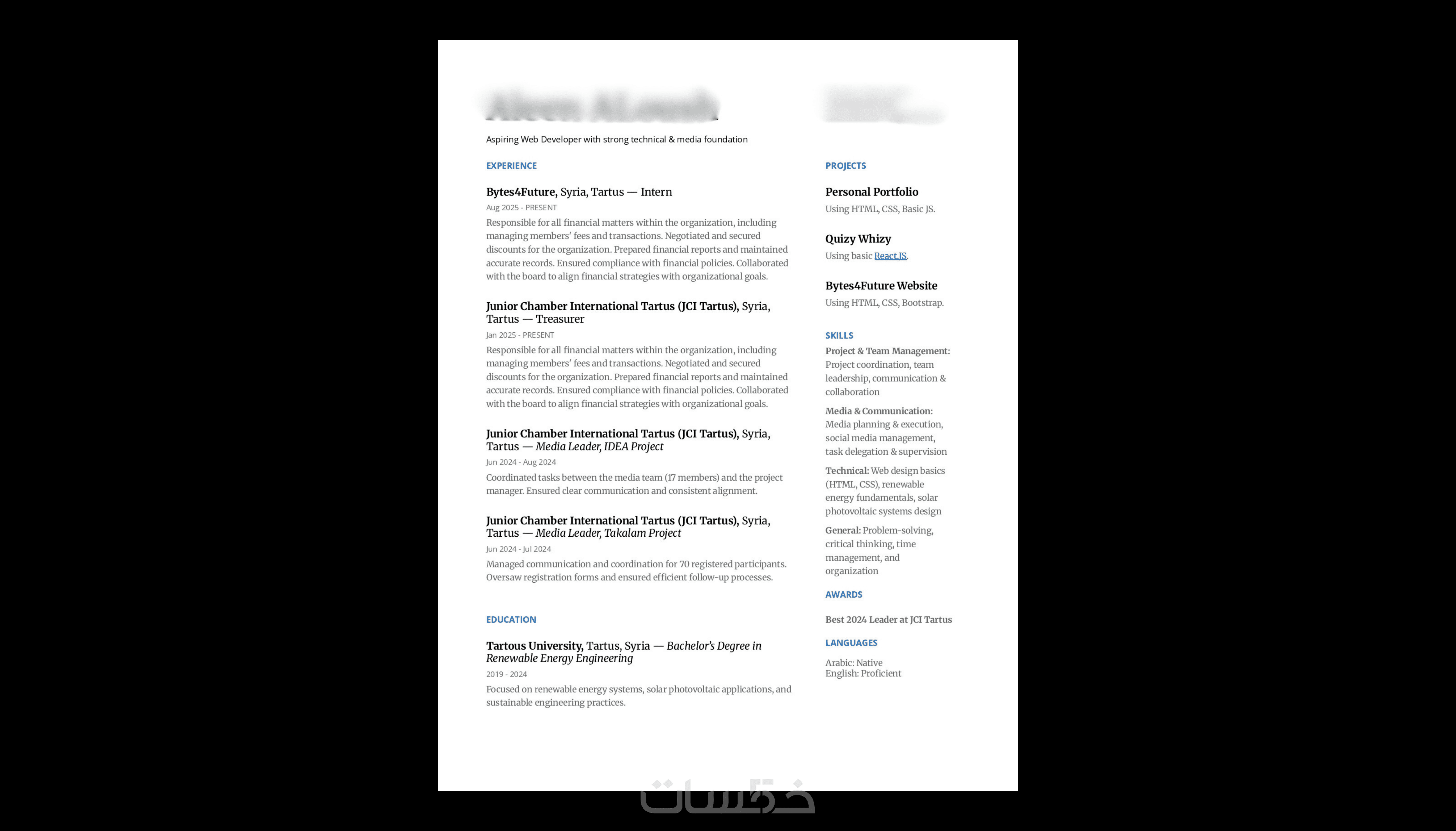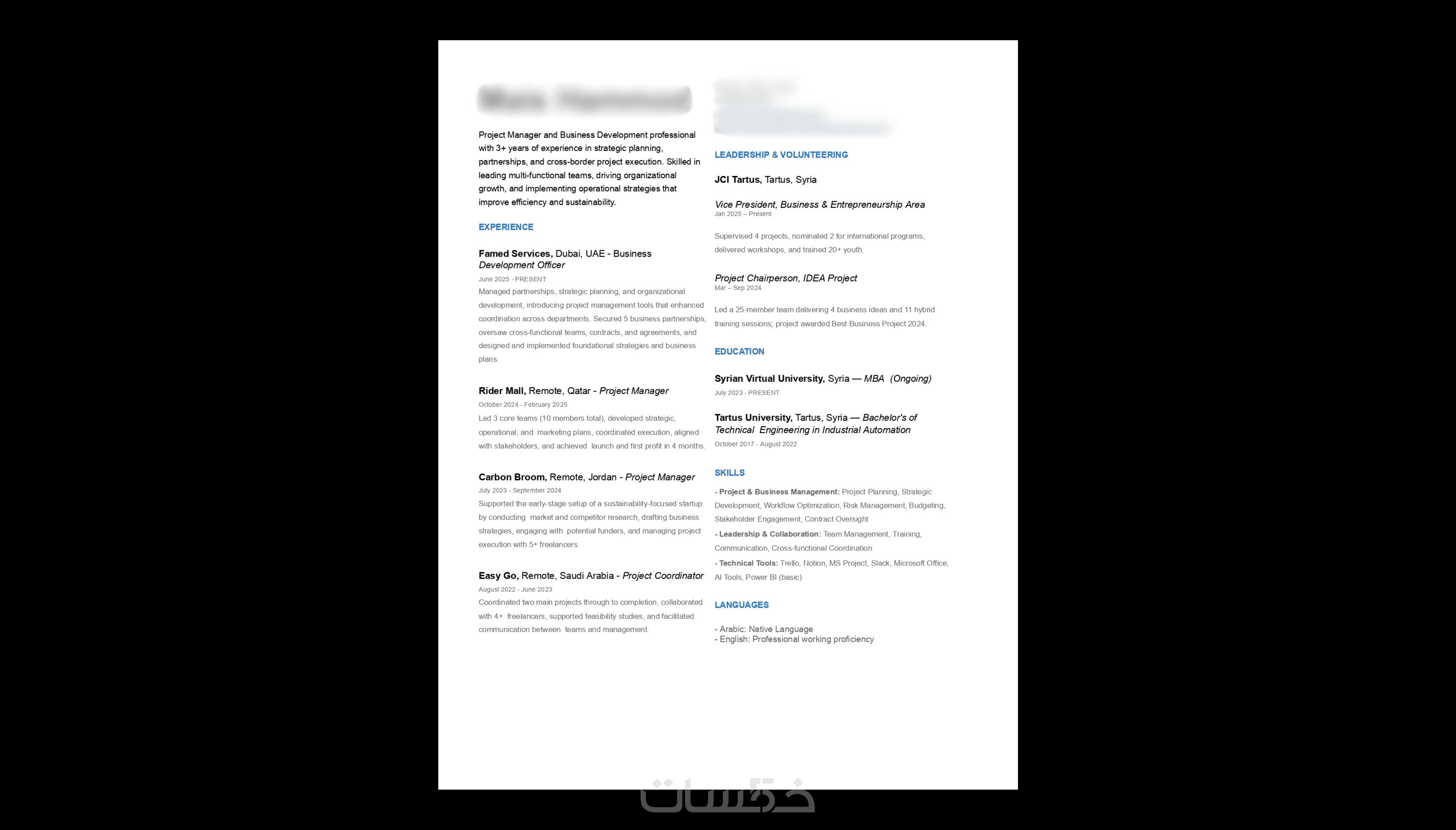 خدمة كتابة سيرة ذاتية احترافية باللغة الإنجليزية