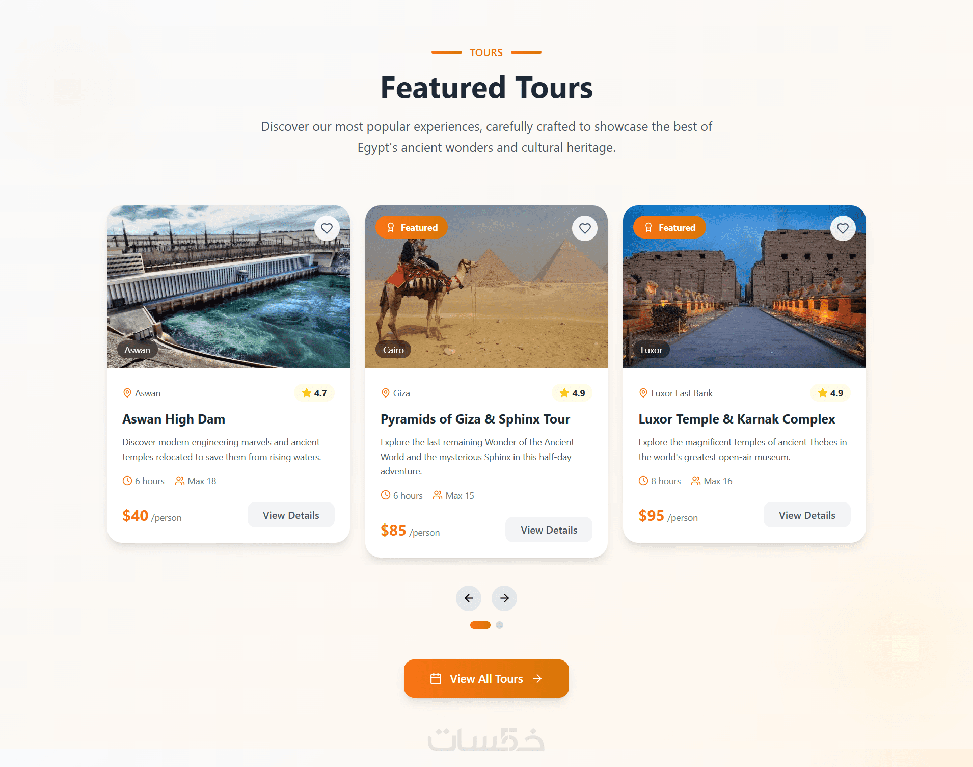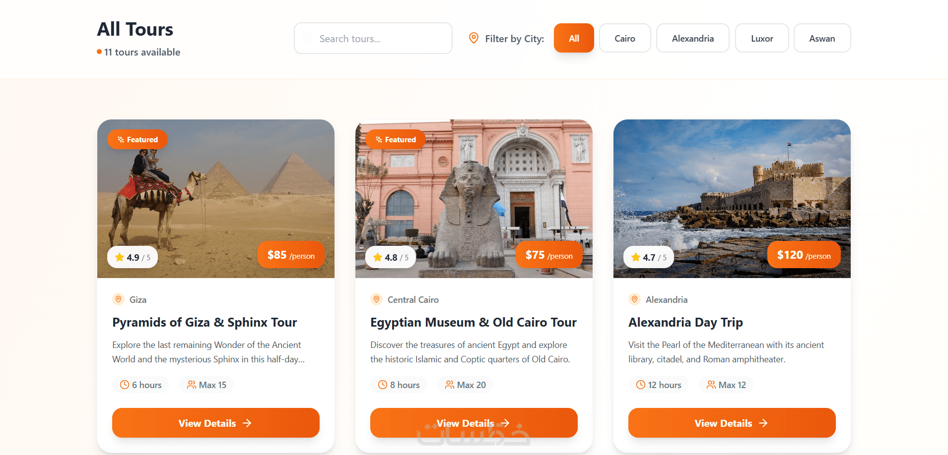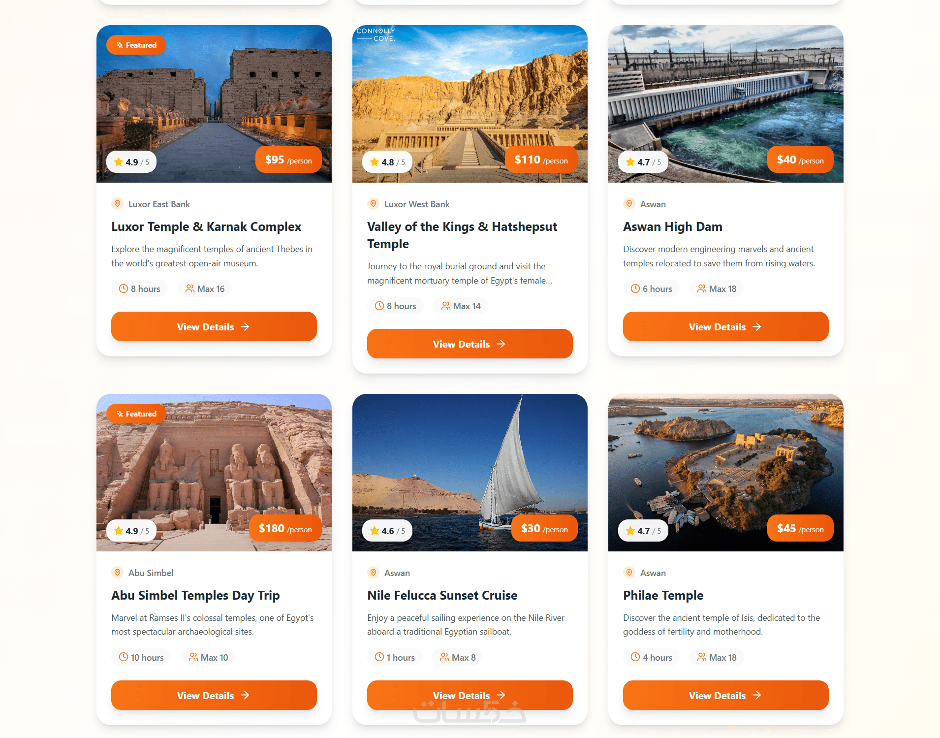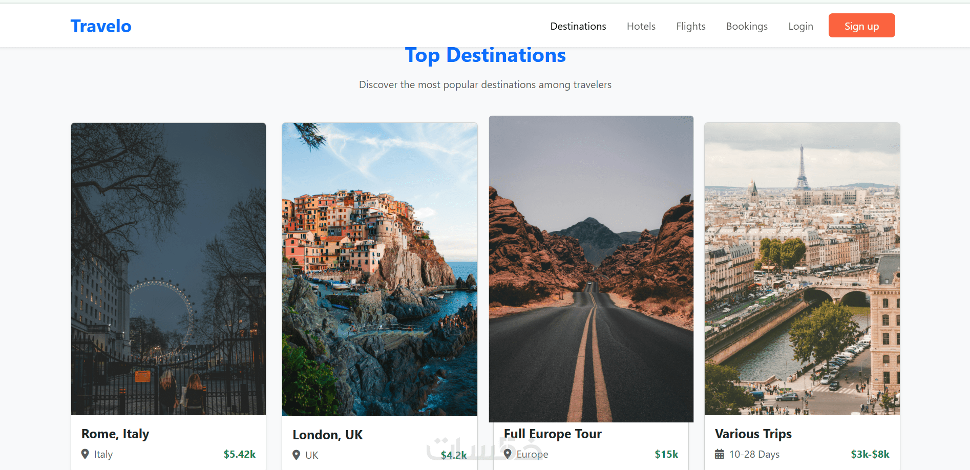 تصميم وتطوير موقع حجوزات رحلات سياحية احترافي React.js
