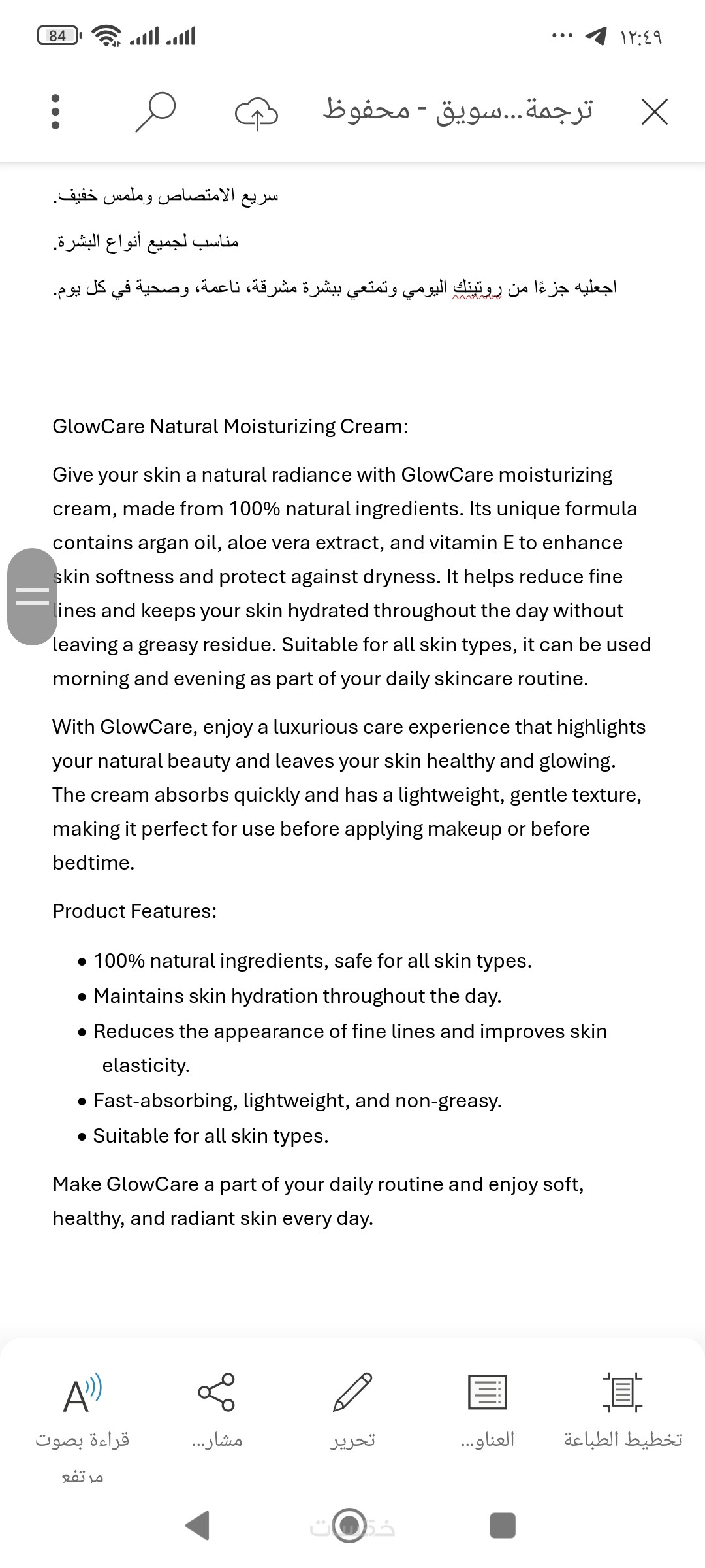 ترجمة يدوية ليست حرفية من اللغة الانكليزية إلى اللغة العربية