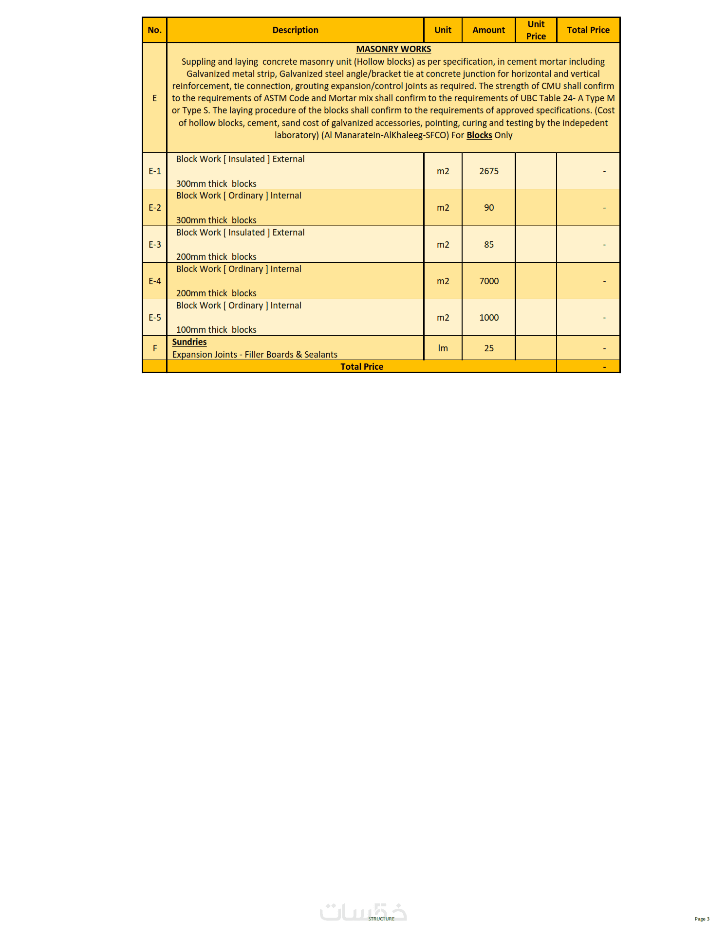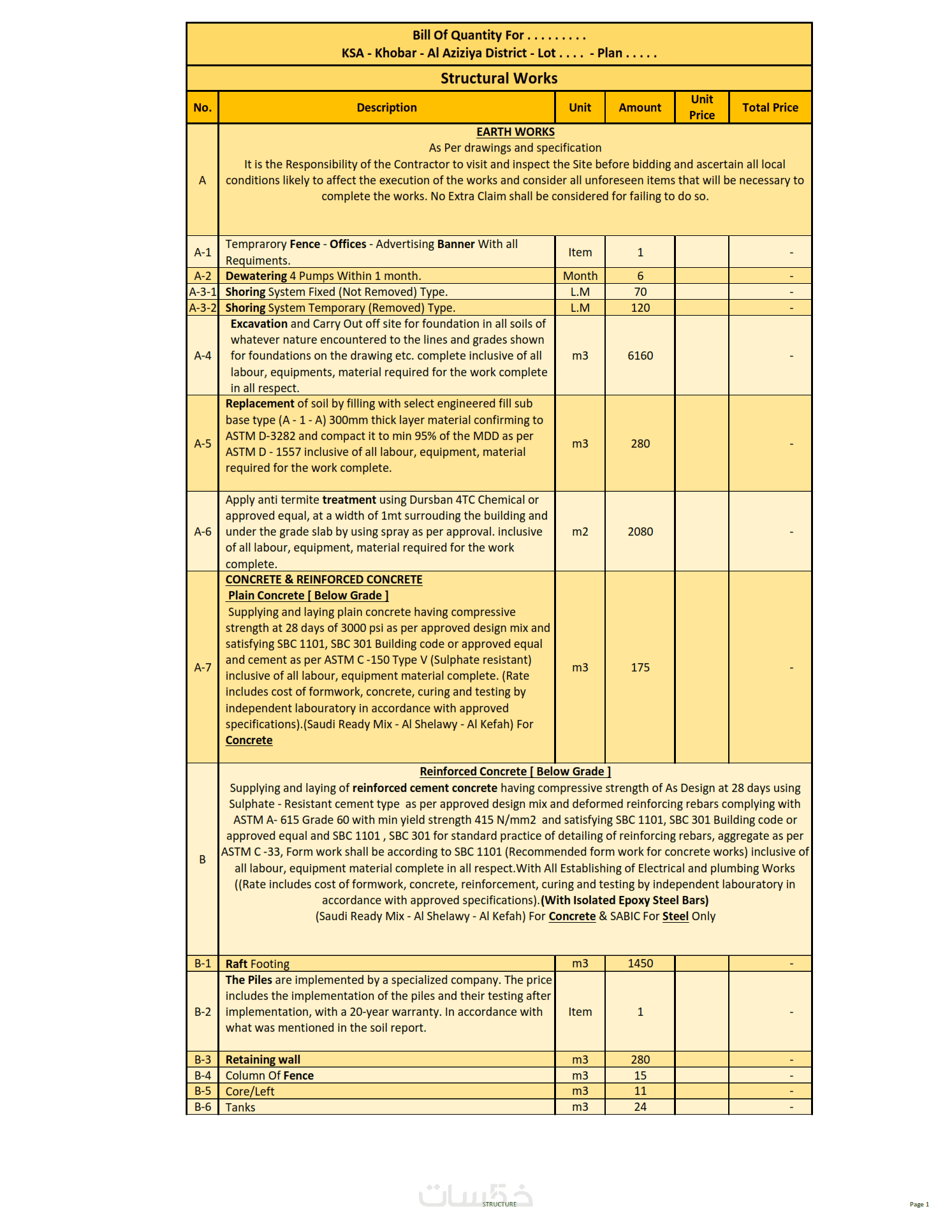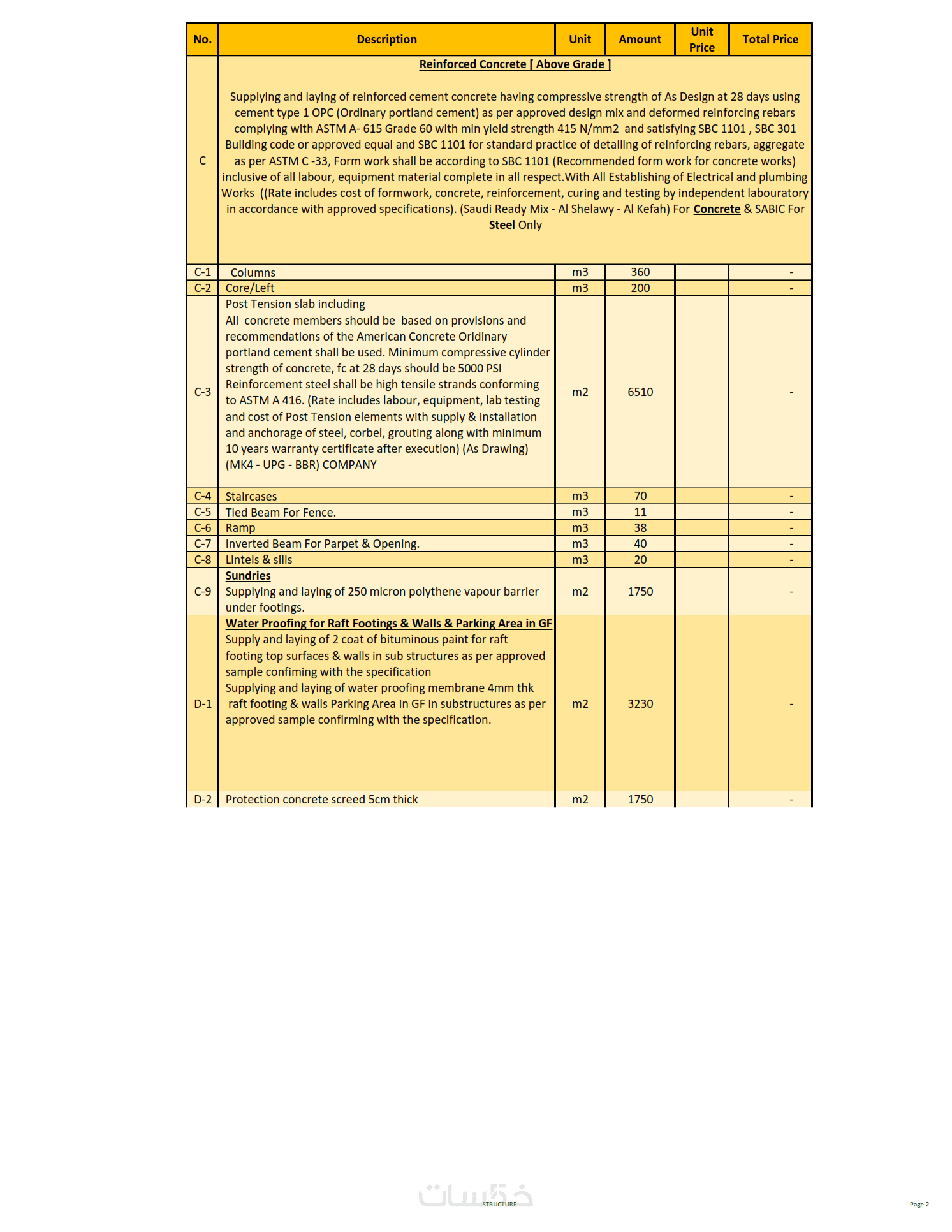 حساب وحصر الكميات مع التسعير لمشاريع البناء المختلفة