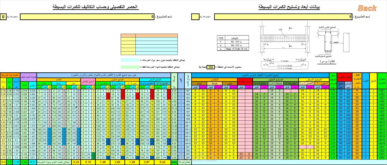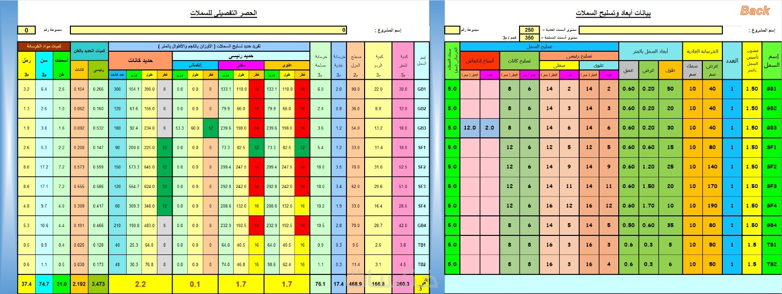 حساب وحصر كميات المواد الإنشائية والمعمارية للمشاريع