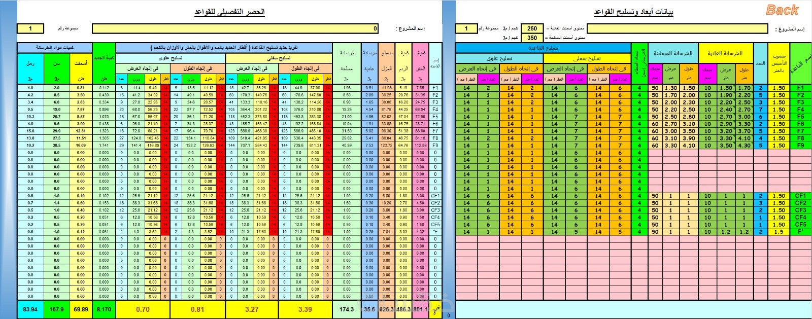 حساب كميات العظم و التشطيبات بشكل دقيق و مفصل