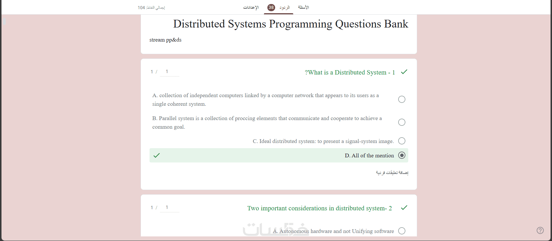 إدخال أسئلة MCQ الى مواقع الامتحانات