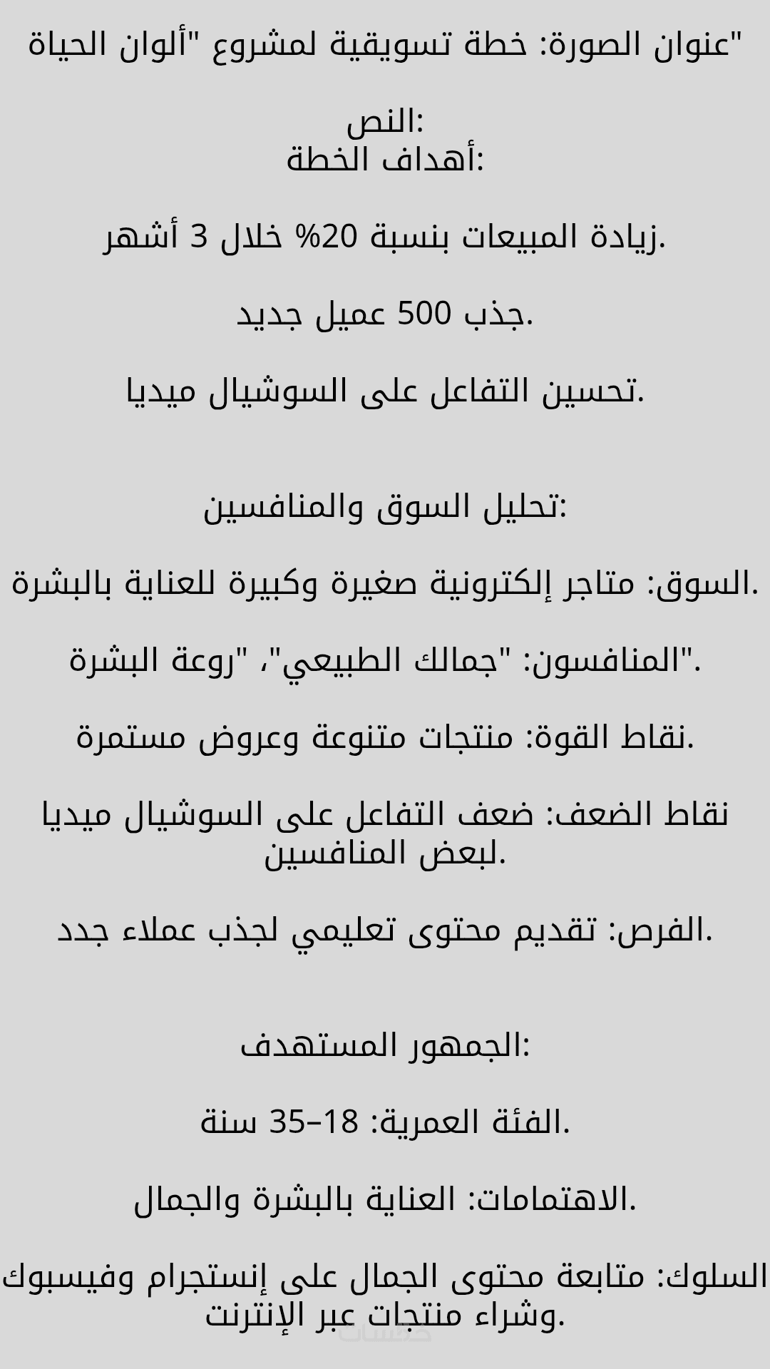 سوف اضع بين يديك خطه تسويقيه متكامله تساعدك في تطوير مشروعك