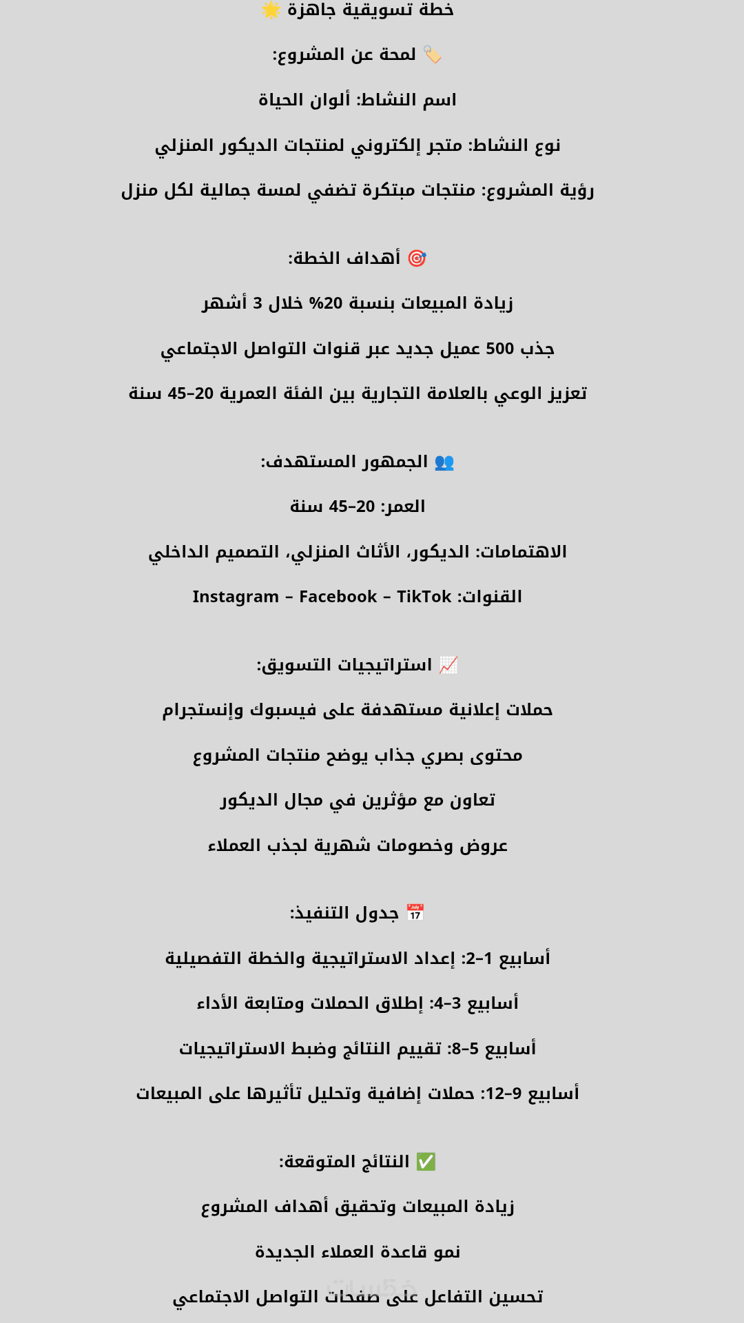 خطه تسويقية متكامله لمشروعك مع استراتيجيات جاهزه للتنفيذ