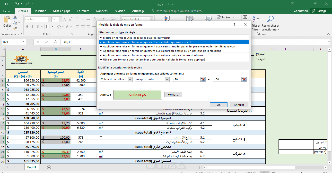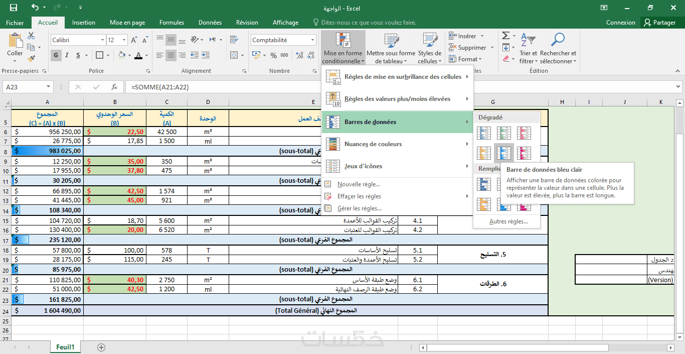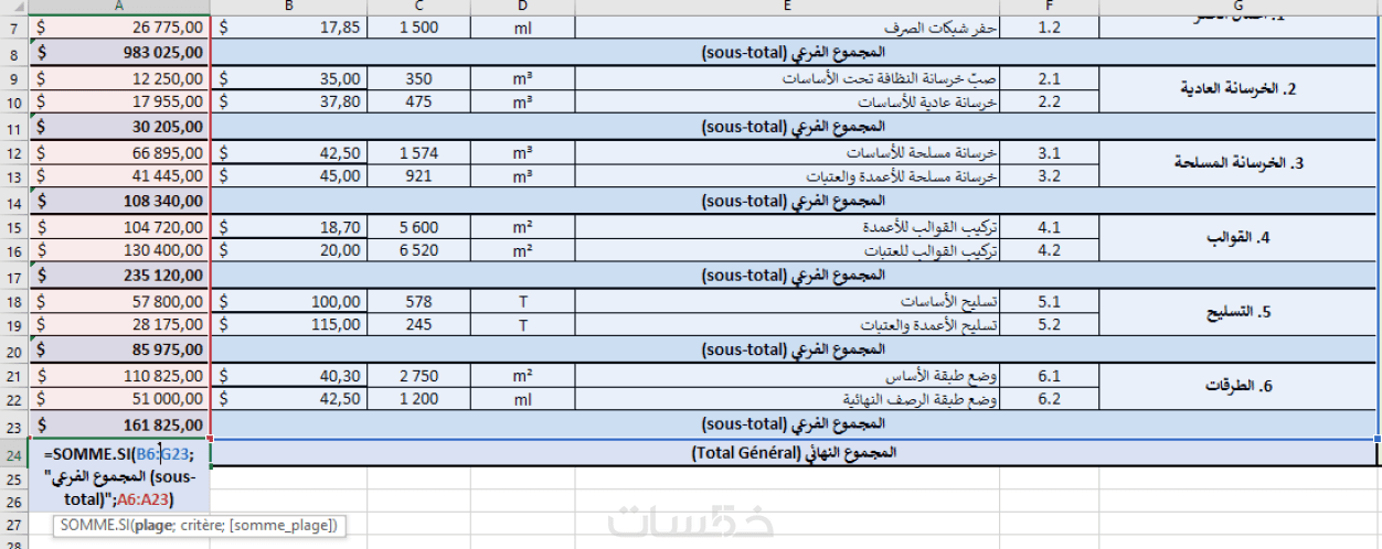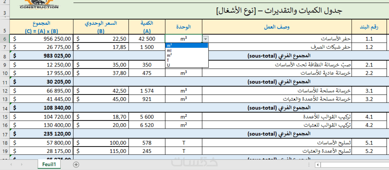 إنشاء جداول إيكسل إحترافية لحساب الكميات وتكلفة المشاريع