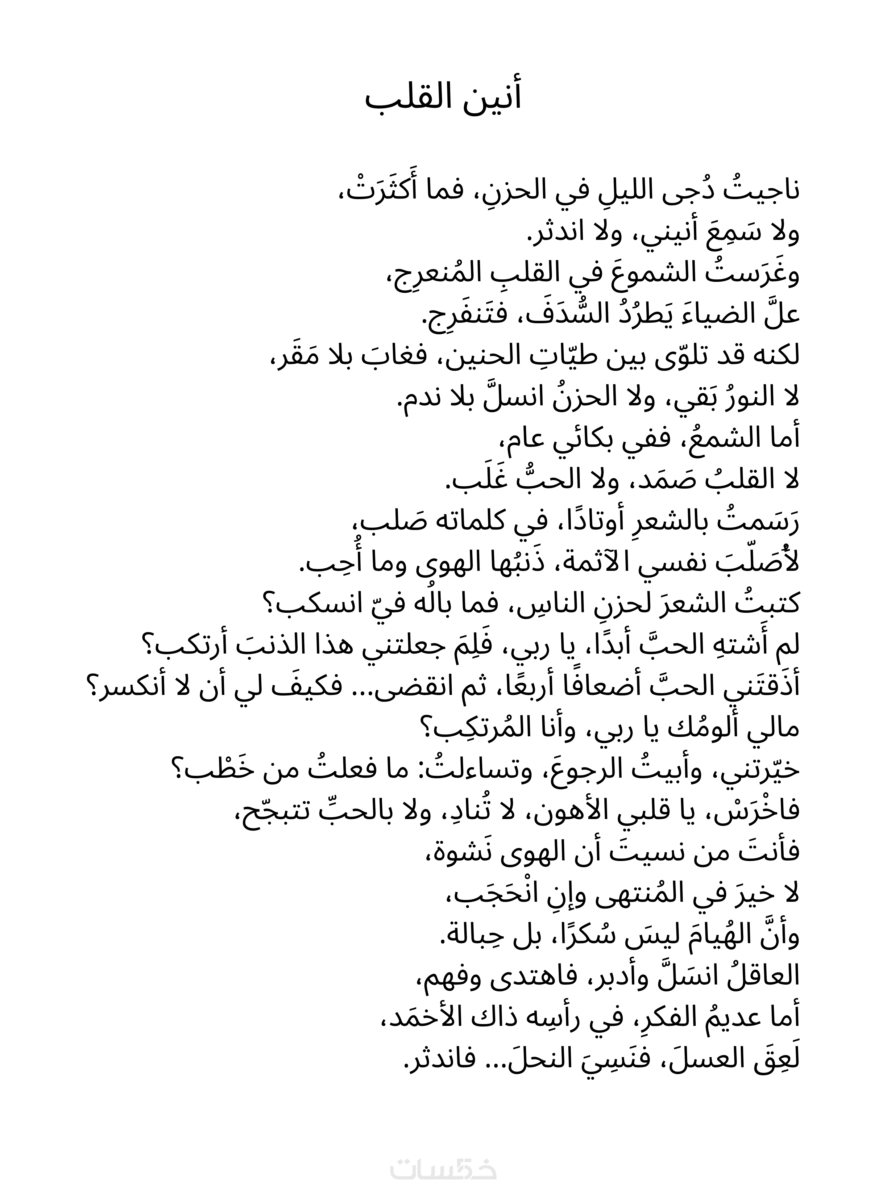 الخواطر والأشعار إلقاء الشعر وما يشبه من كلمات الوجدان