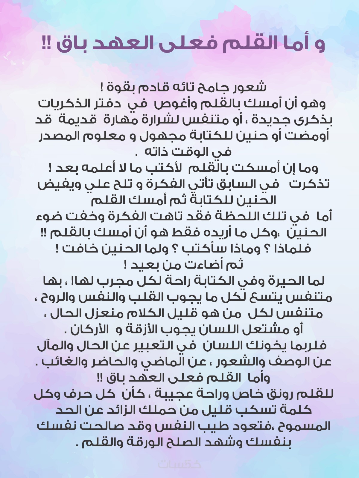 أكتب خواطر أدبية راقية بأسلوبي الخاص ولمسات أنثوية مؤثرة