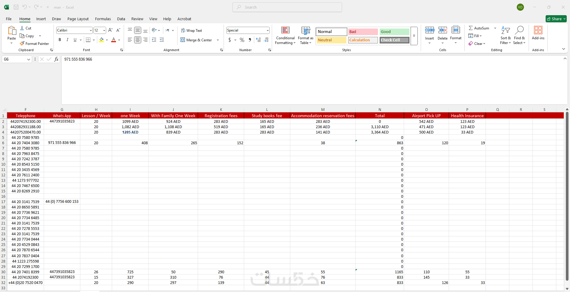 تصميم جداول Excel محاسبية كشف حساب فواتير مصروفات
