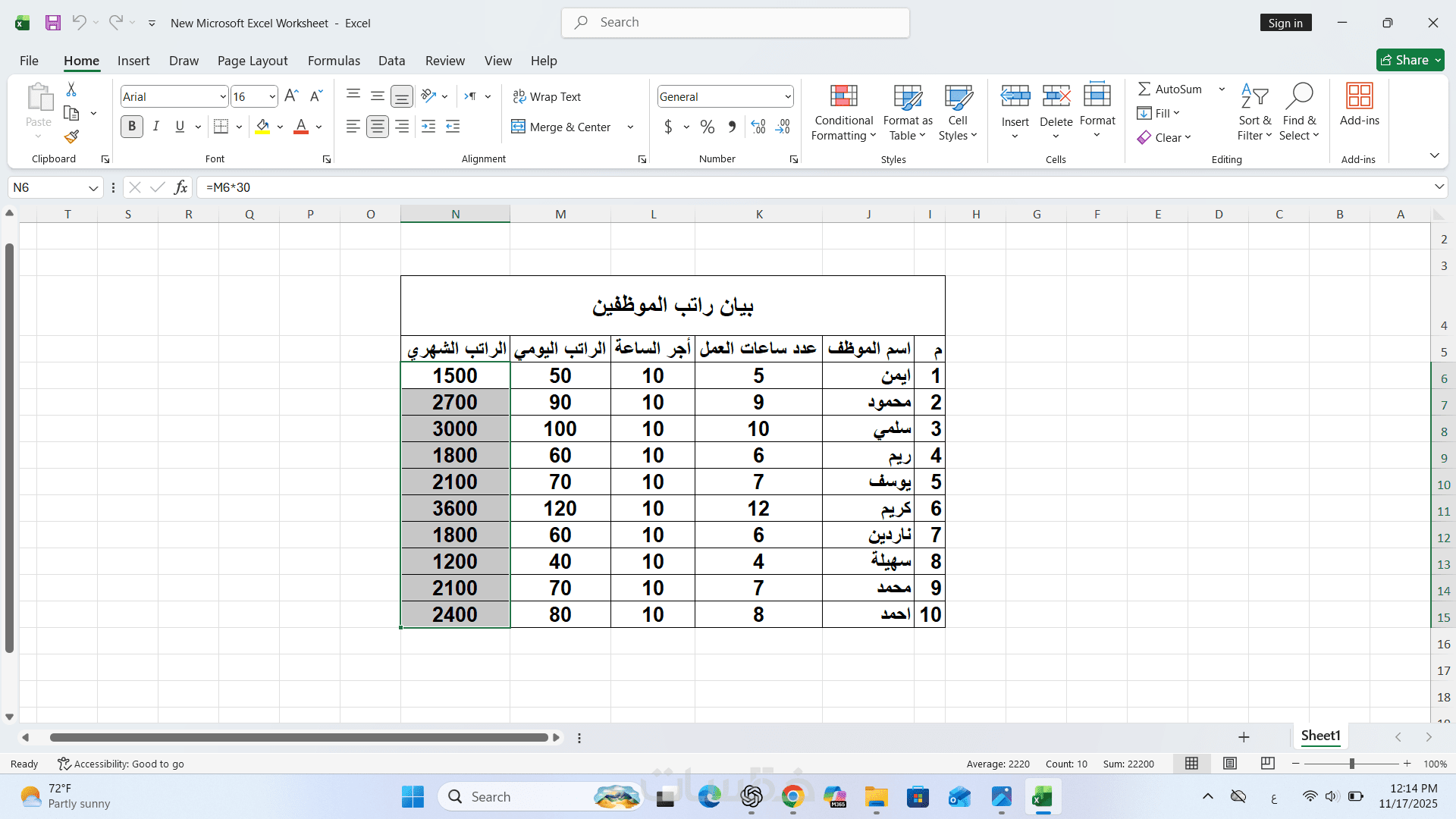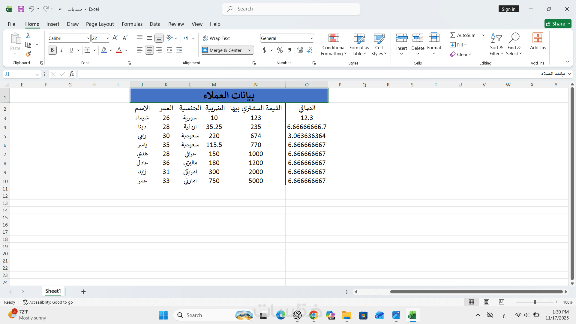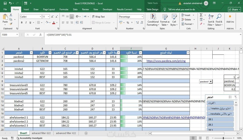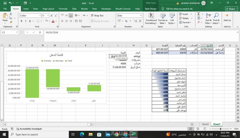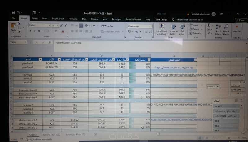 مدخل بيانات على برنامج الإكسل وعمل المعادلات المطلوبه
