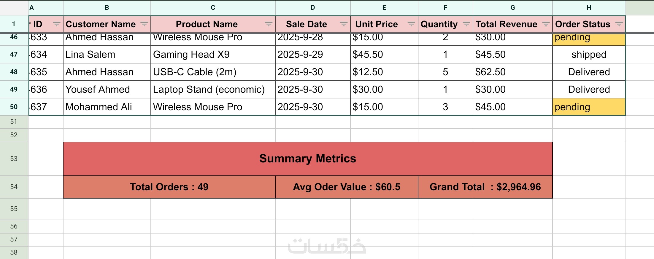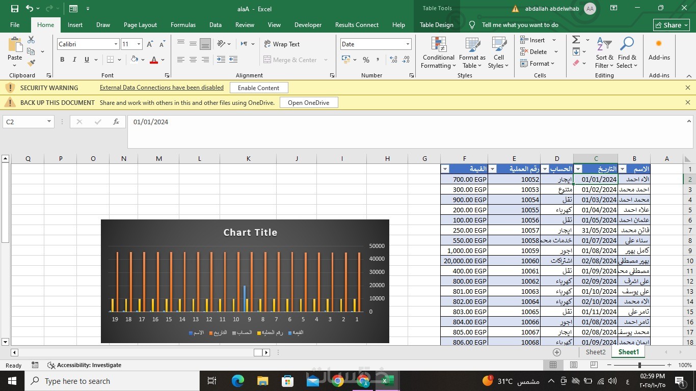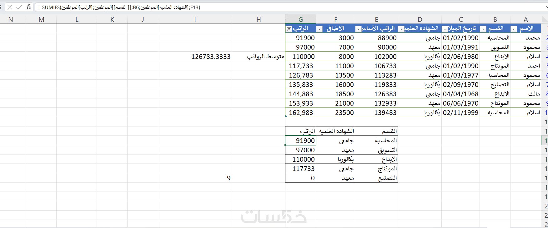 مدخل بيانات على برنامج الإكسل وعمل المعادلات المطلوبه