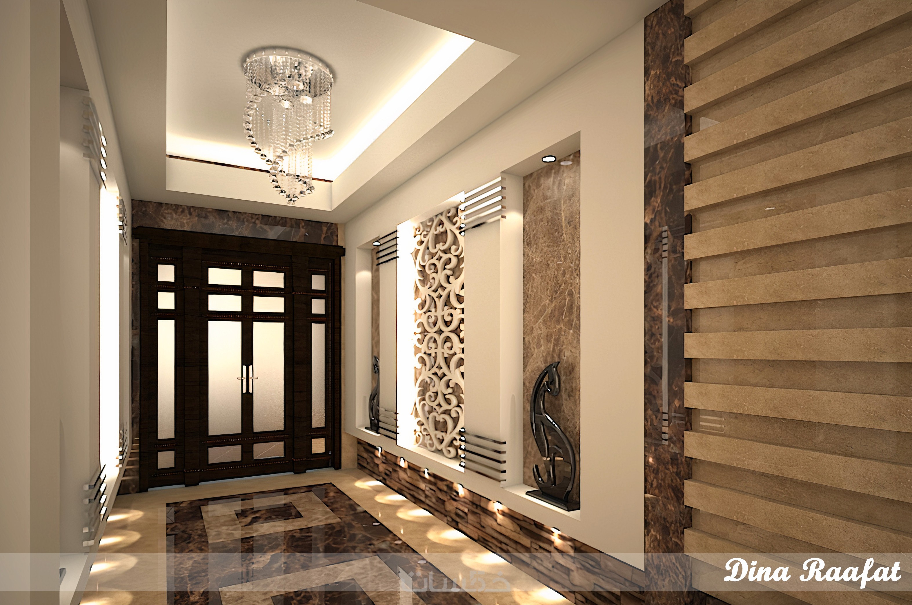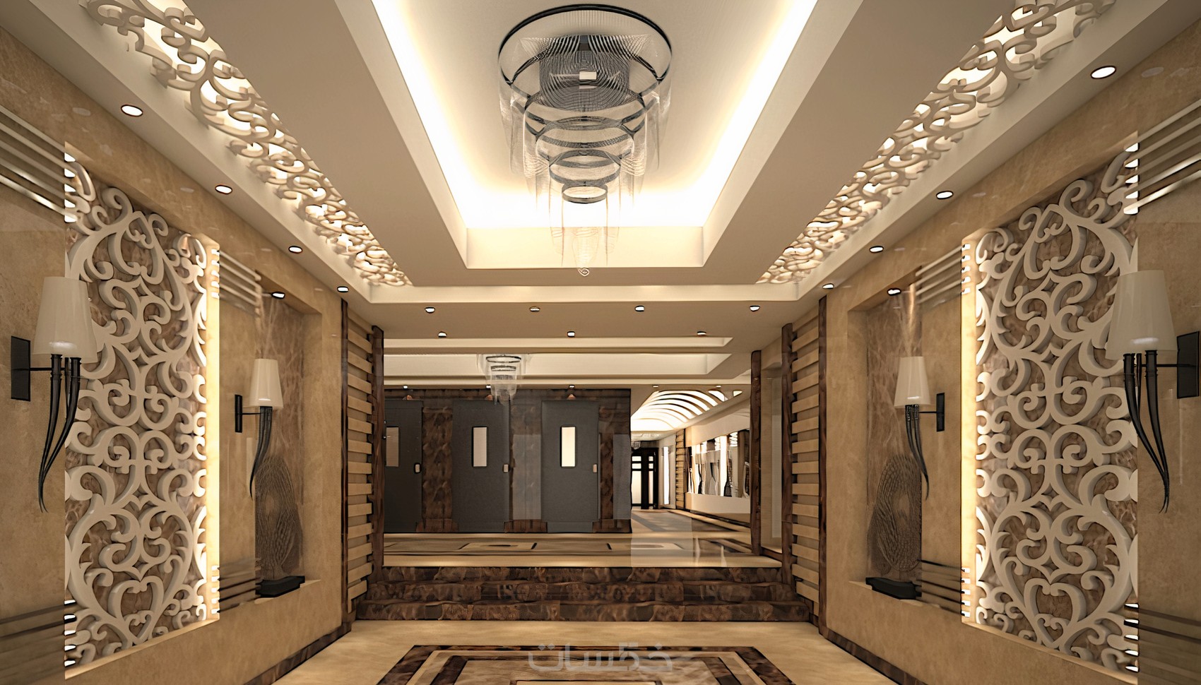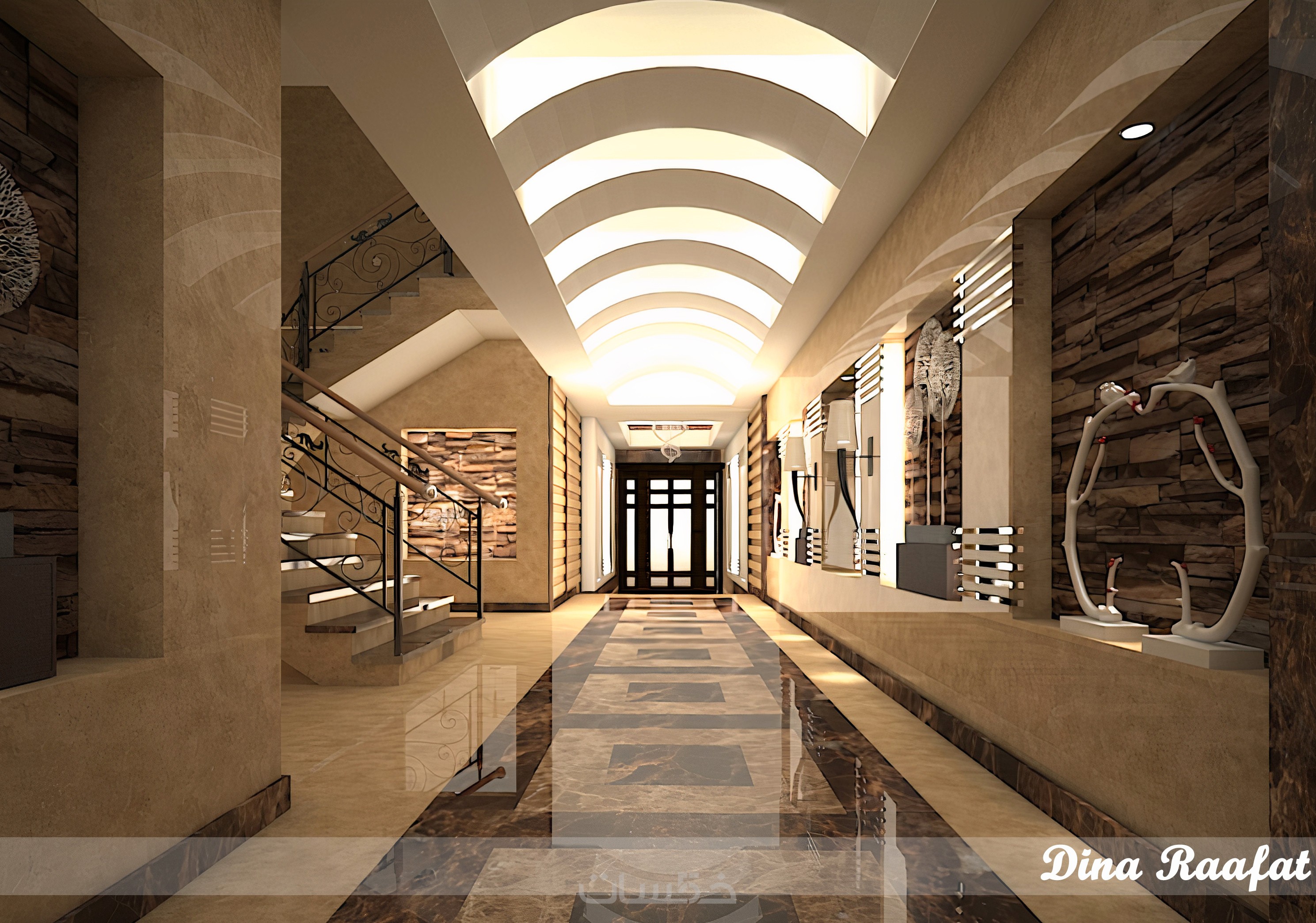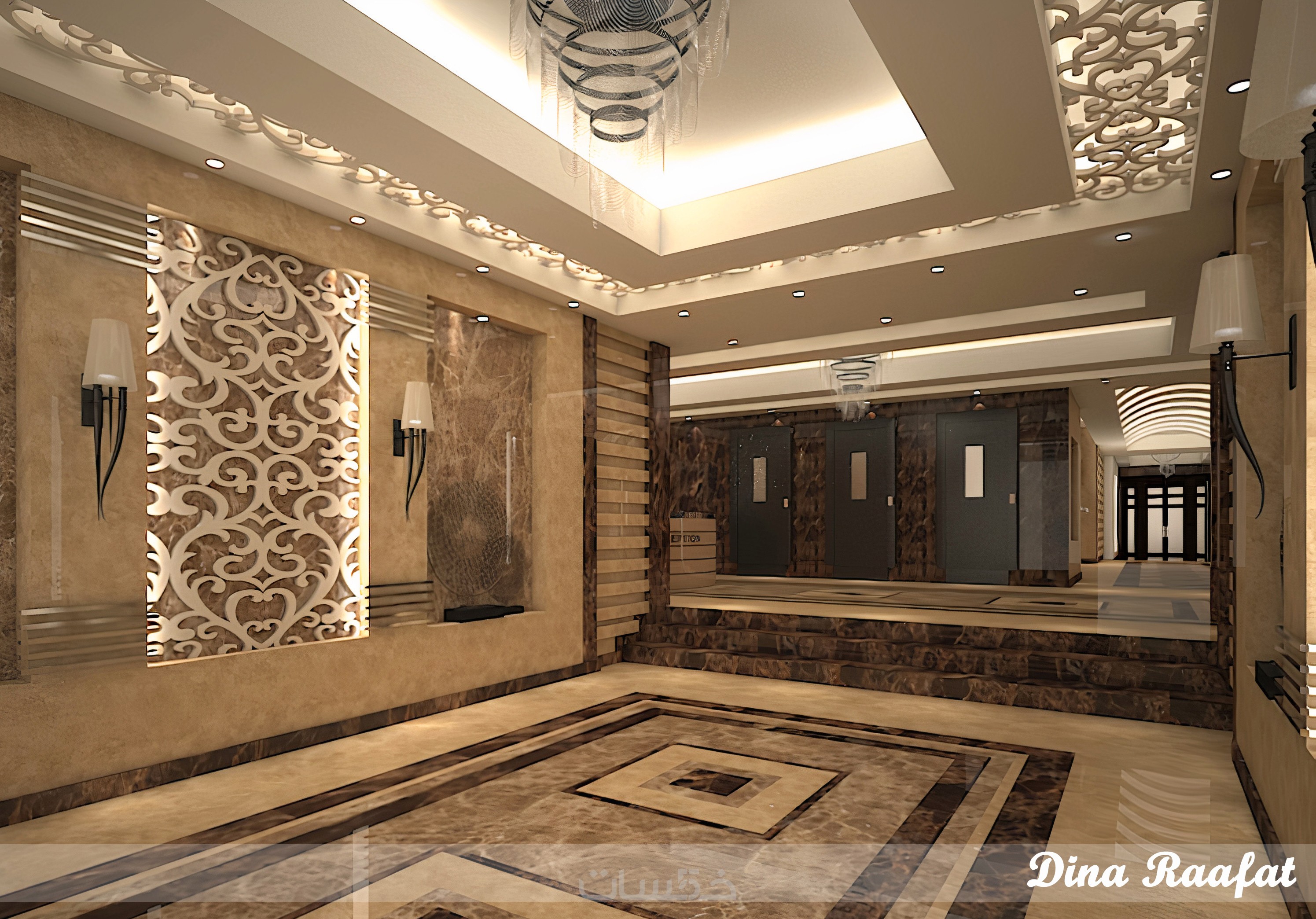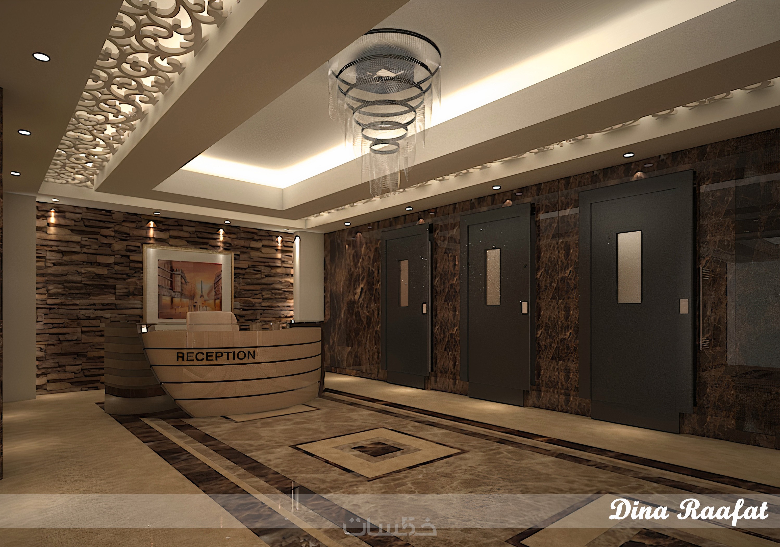 تصميم ديكور مدخل مبنى داخلي مع ريندر واقعي احترافي ببرنامج 3DS