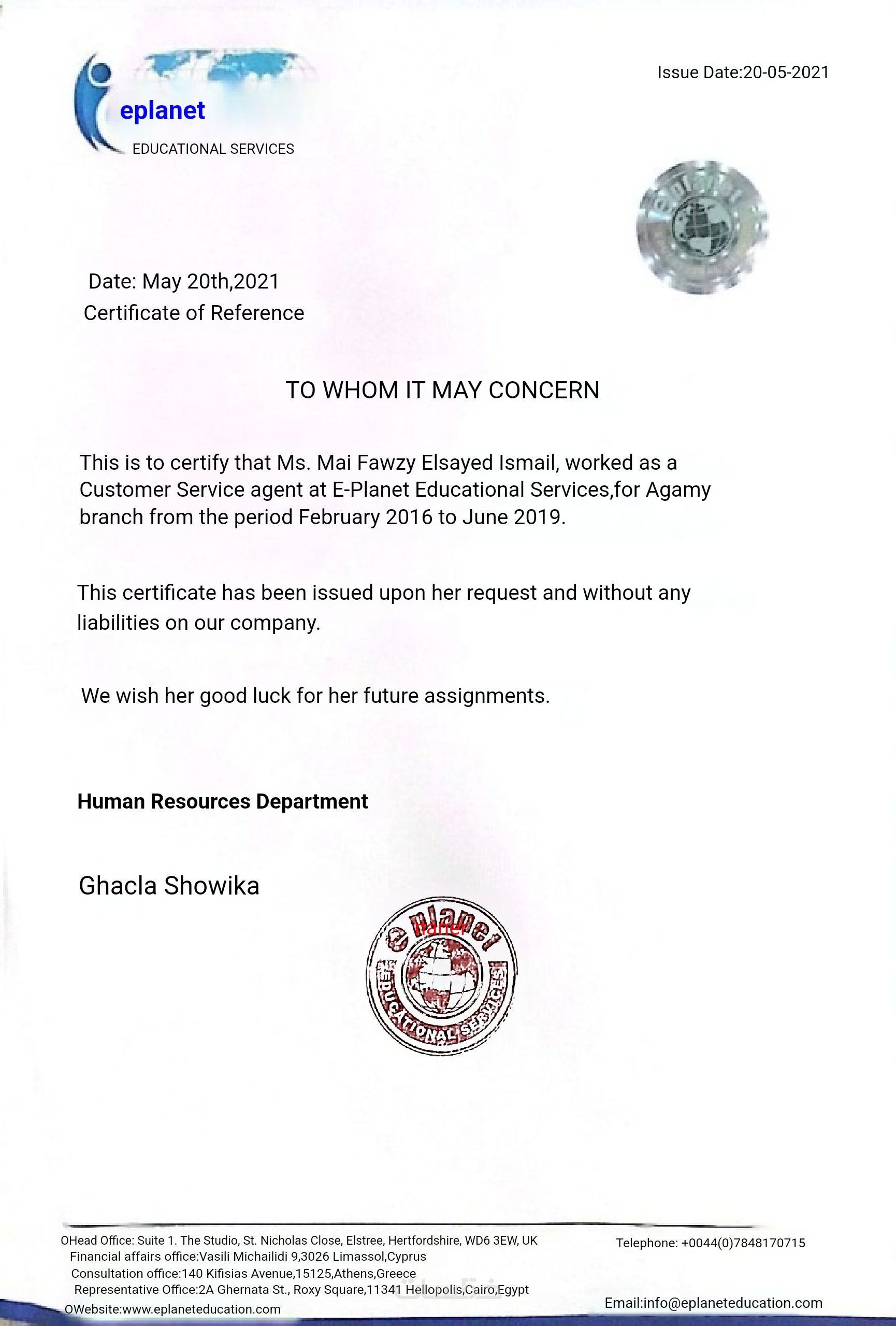 شهادات شكر وتقدير