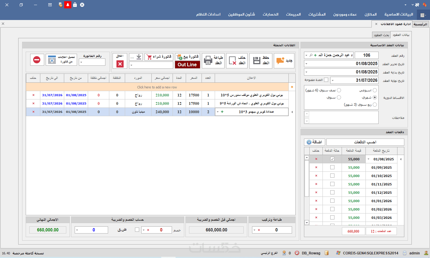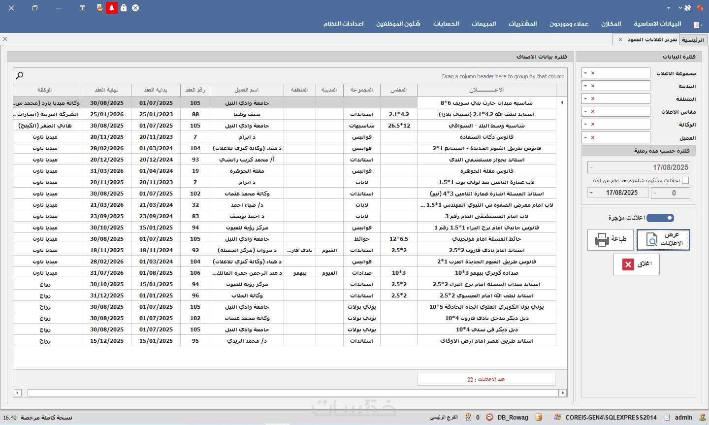 برنامج حسابات لادراة شركات الدعاية والاعلان اوت دور