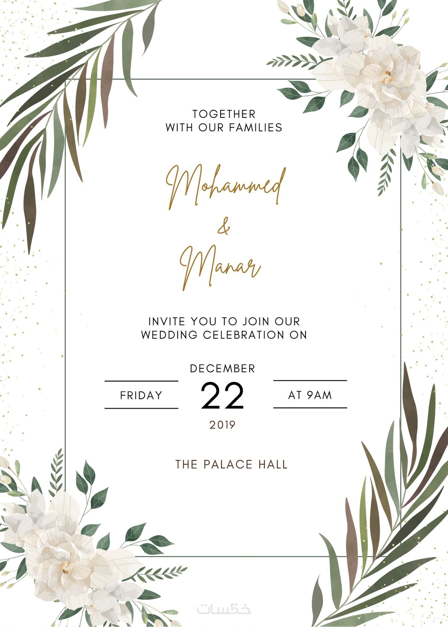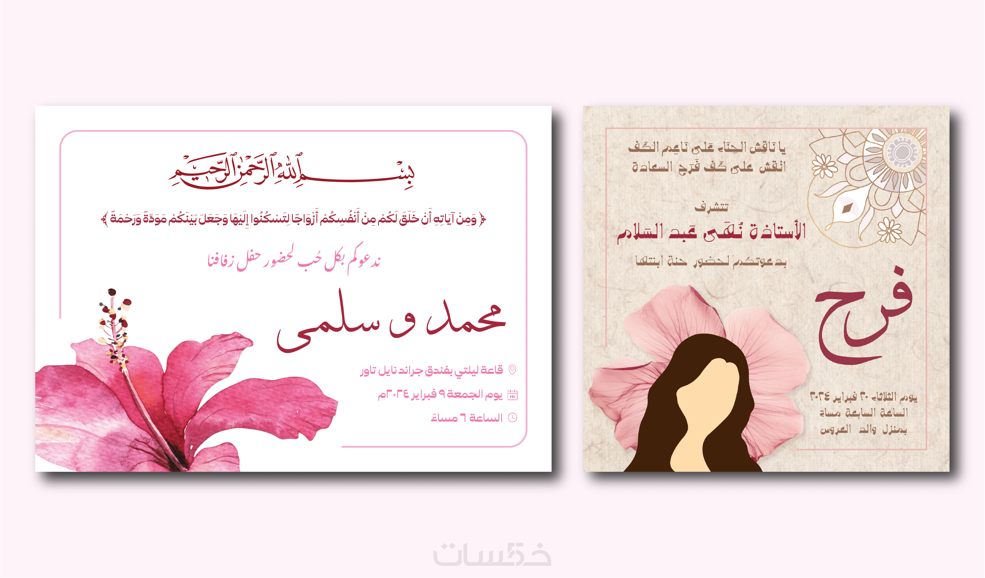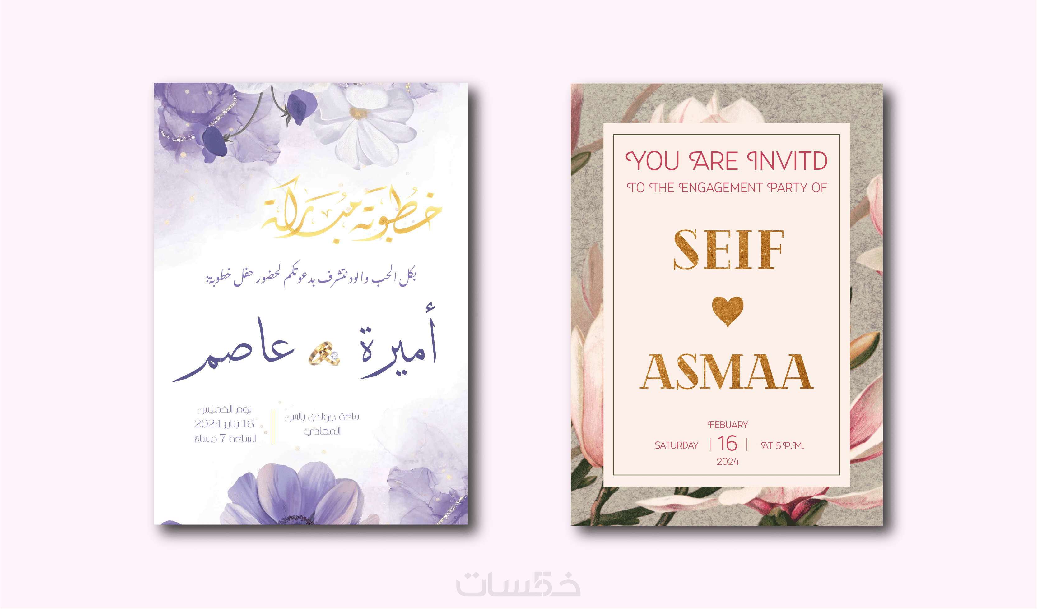 تصميم دعوات الزفاف ودعوات الخطوبة واعياد الميلاد