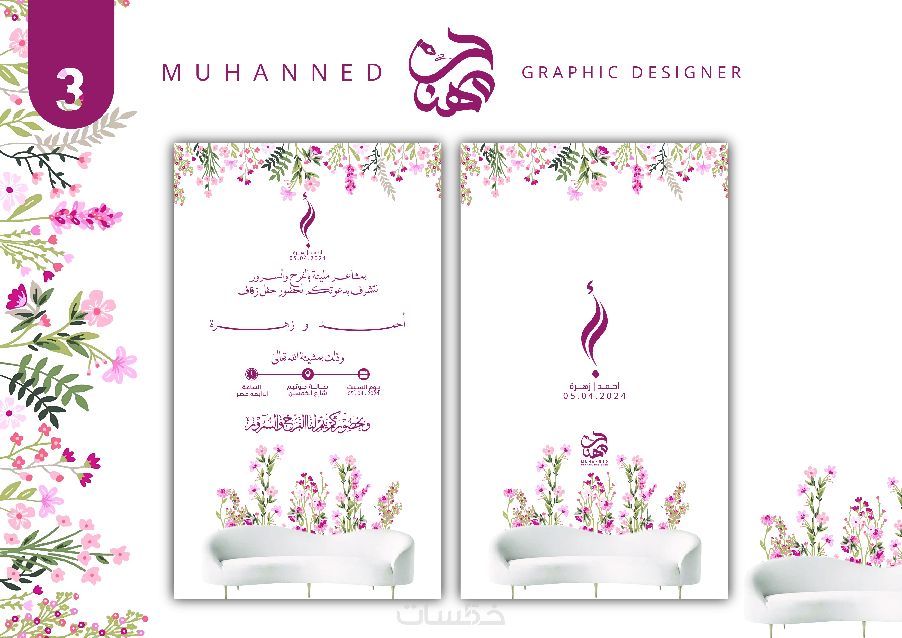 تصميم دعوات حفل زفاف وجميع المناسبات