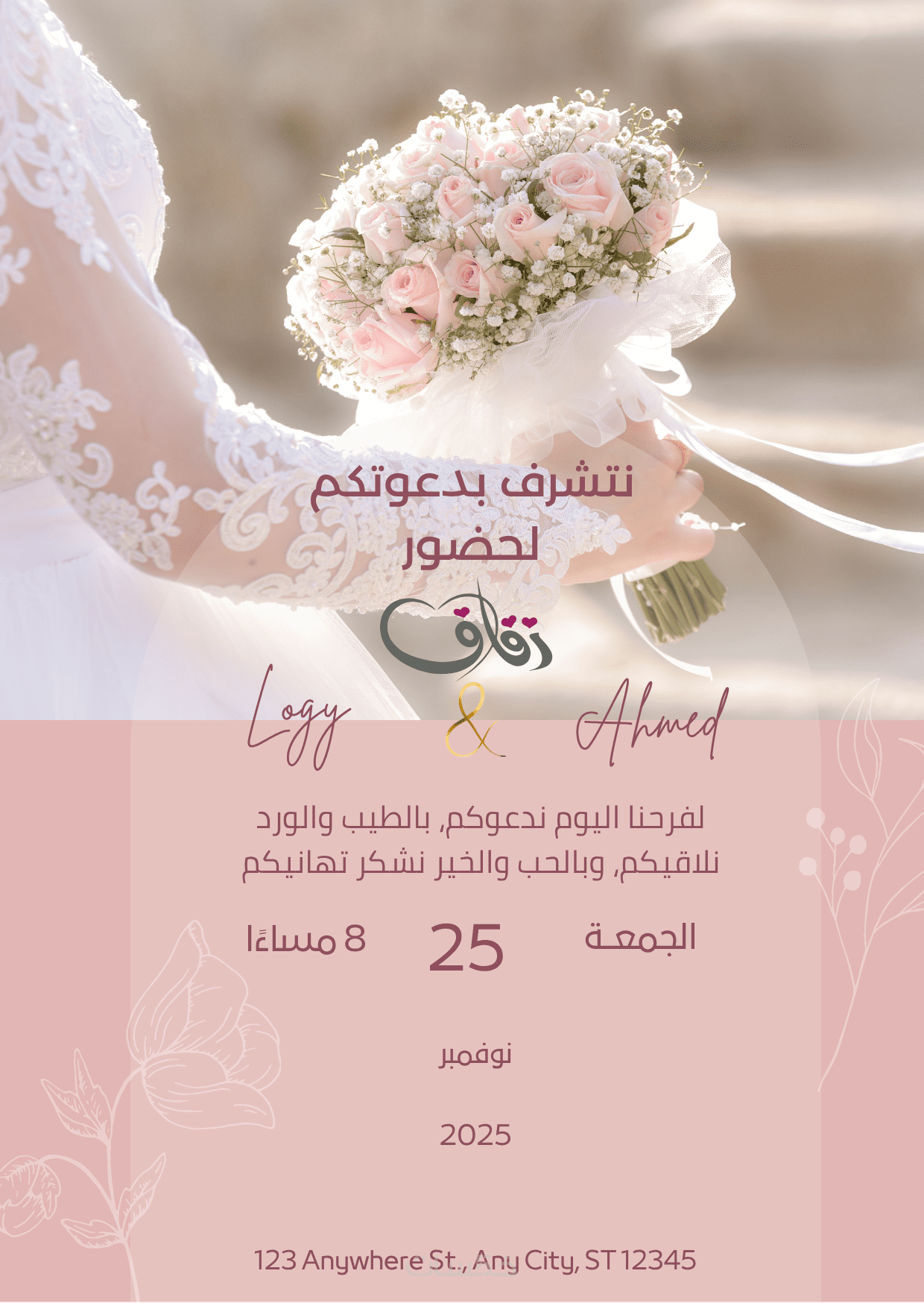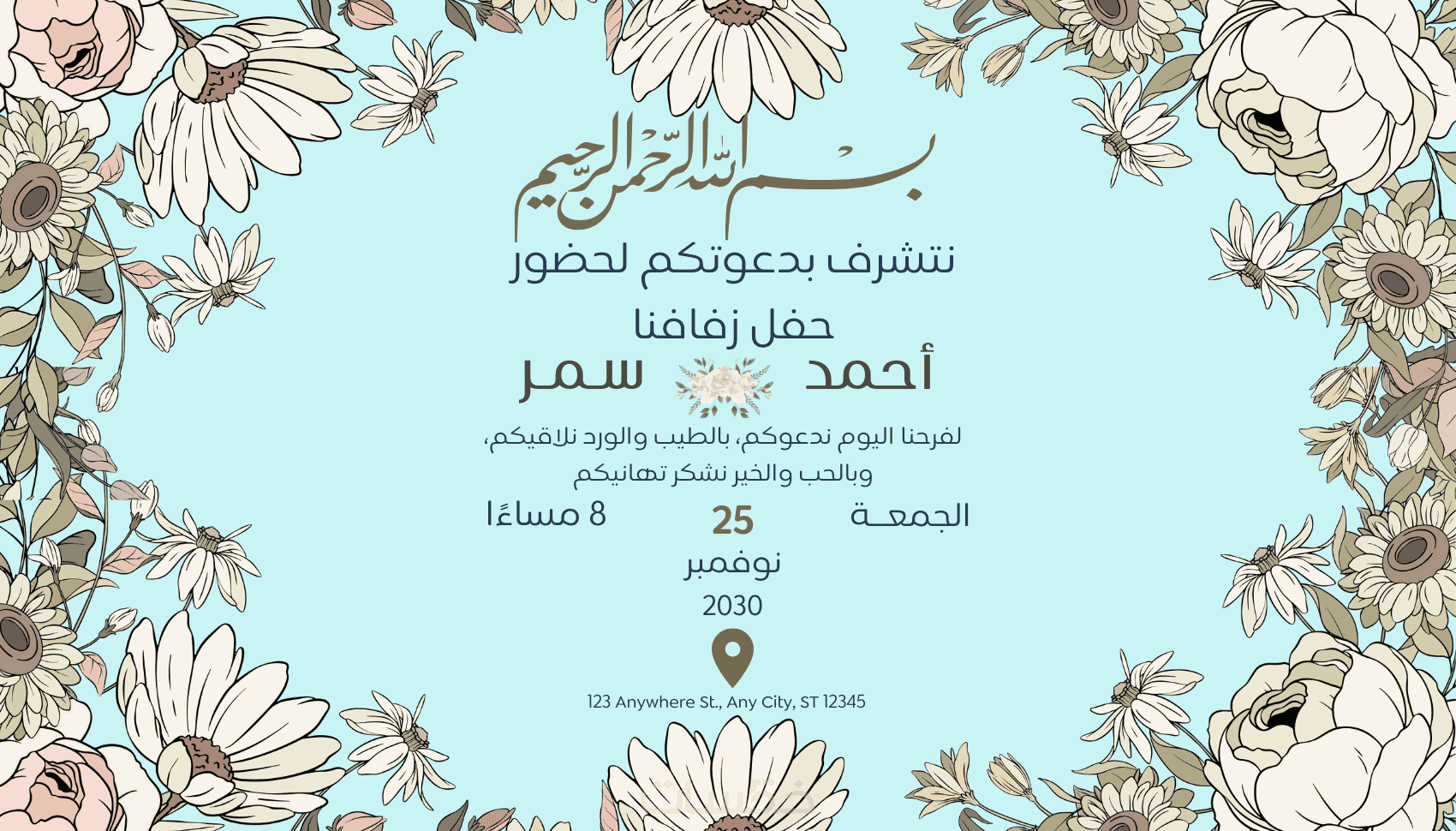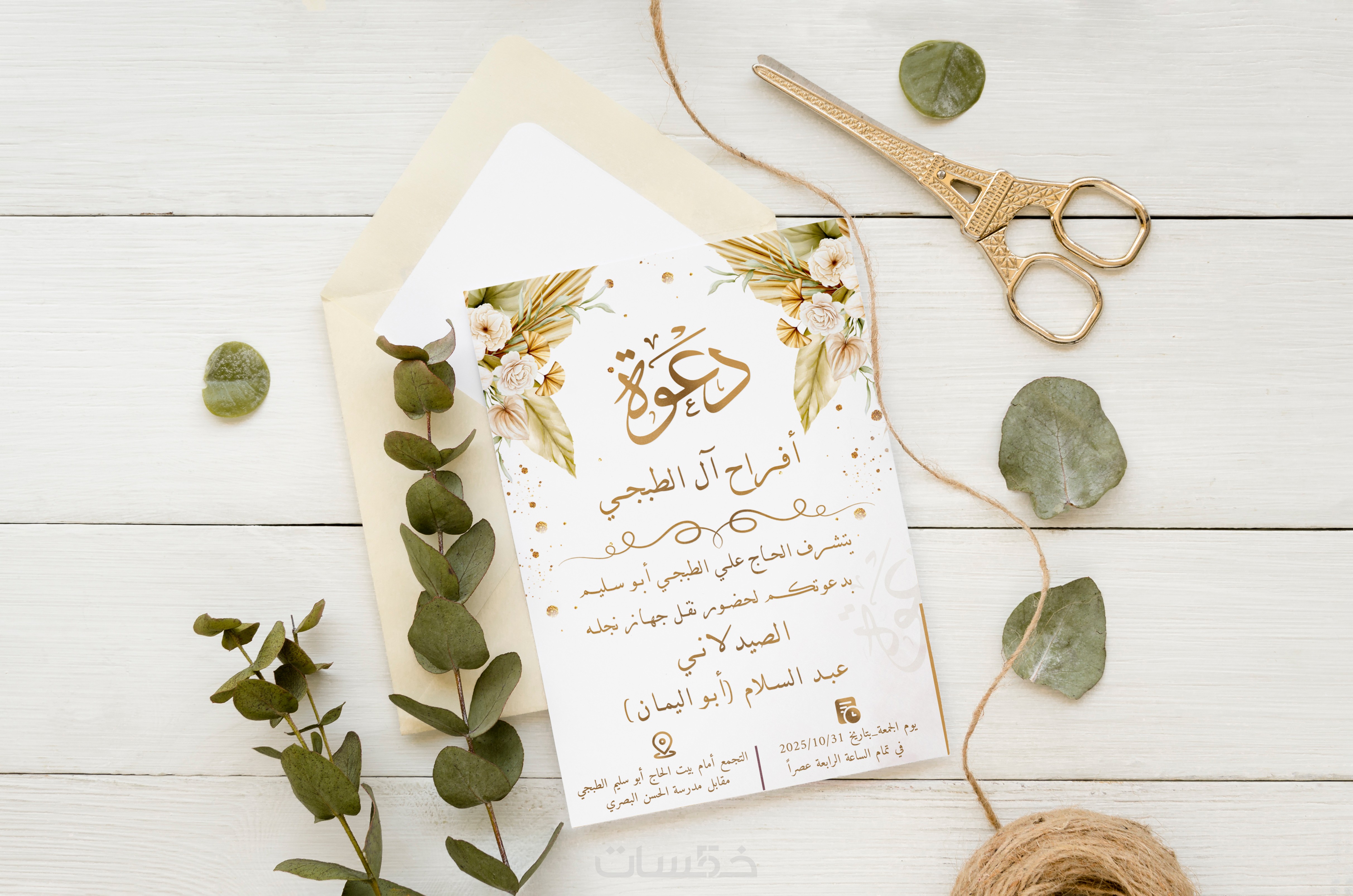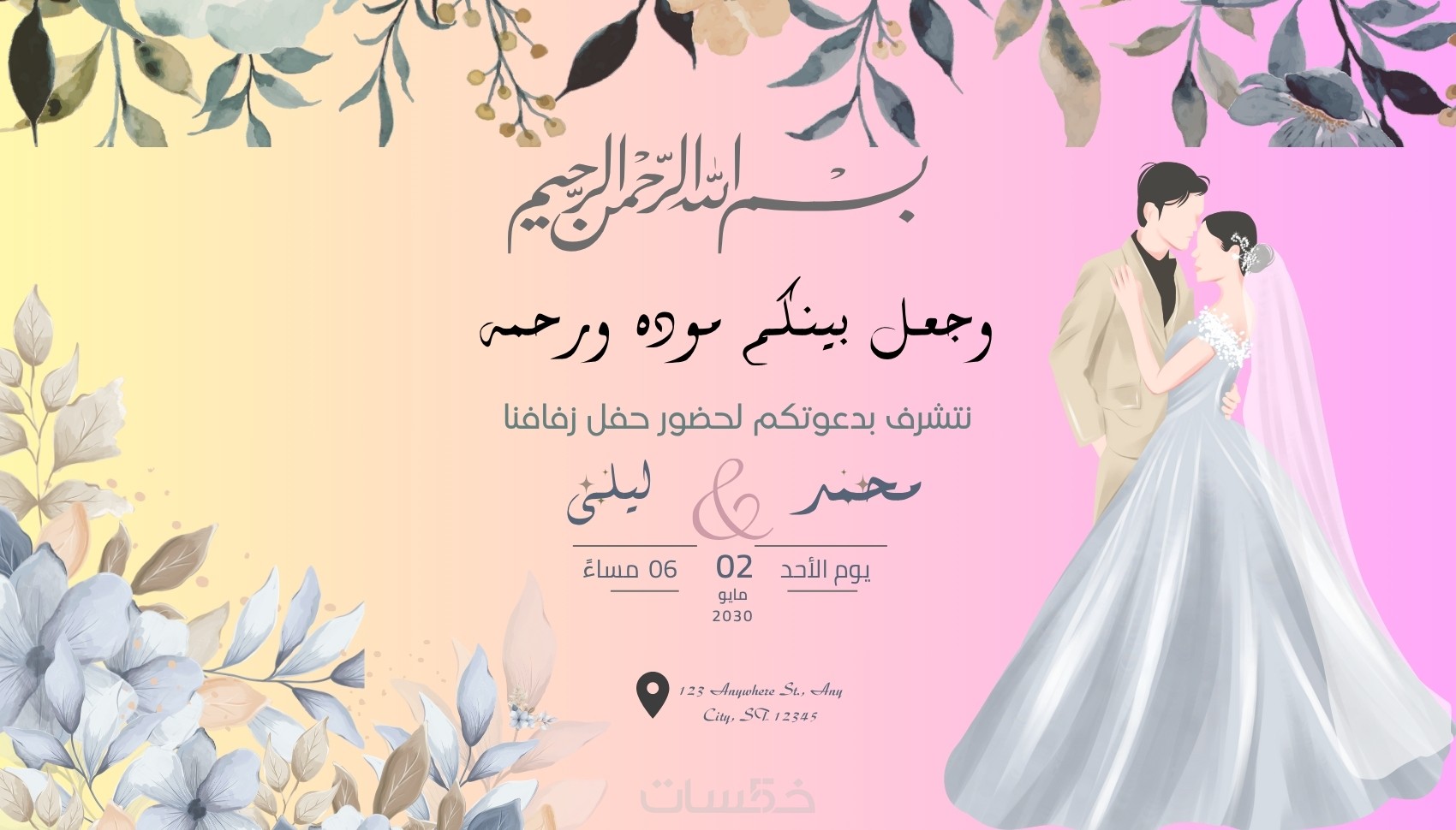 تصميم دعوات زفاف ولادة تخرج باللغة العربية