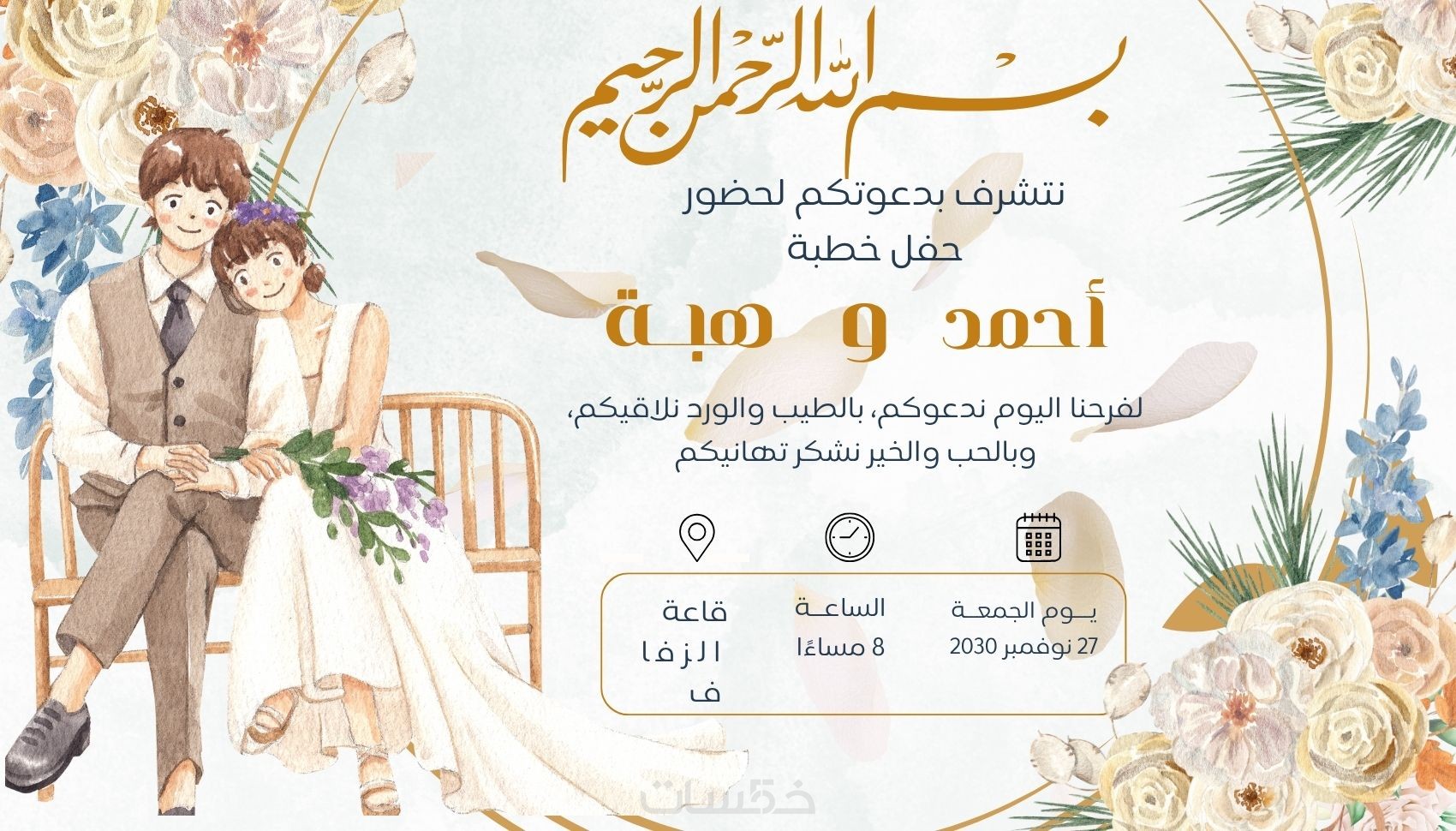 تصميم دعوات الكترونية قابلة للطباعة زفاف أو خطوبة