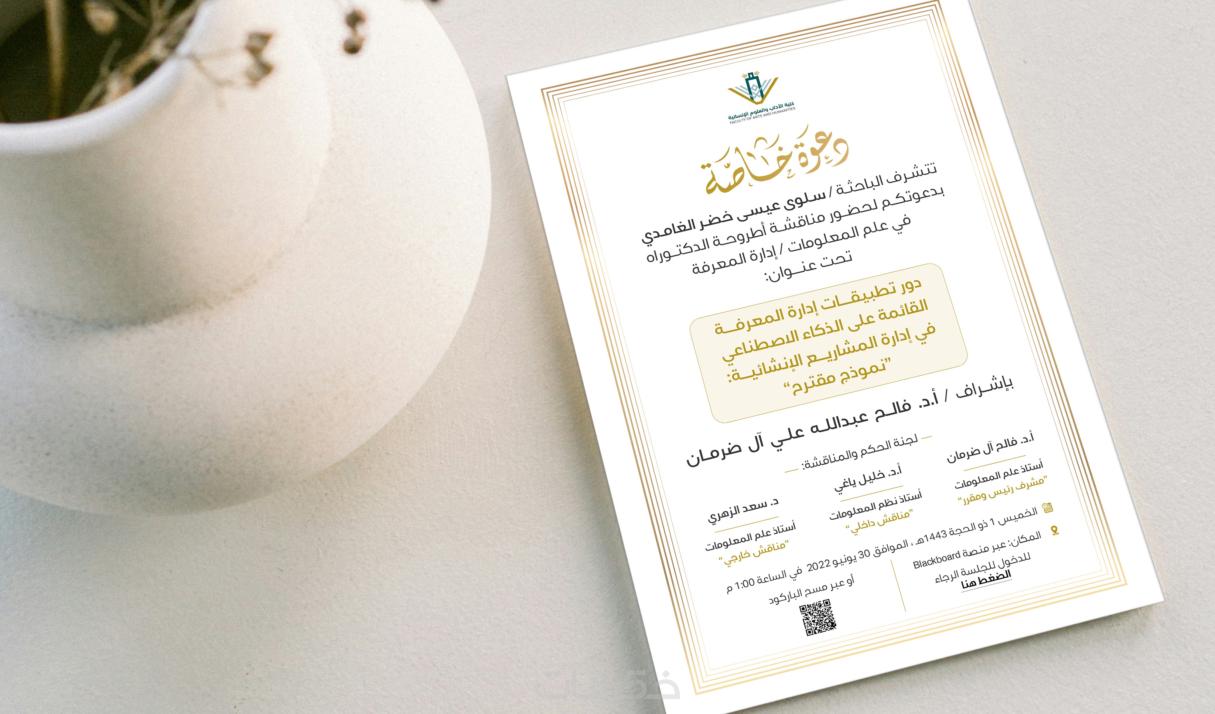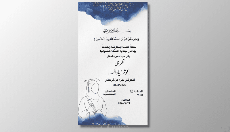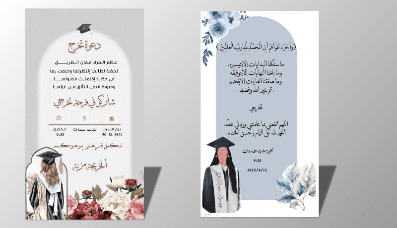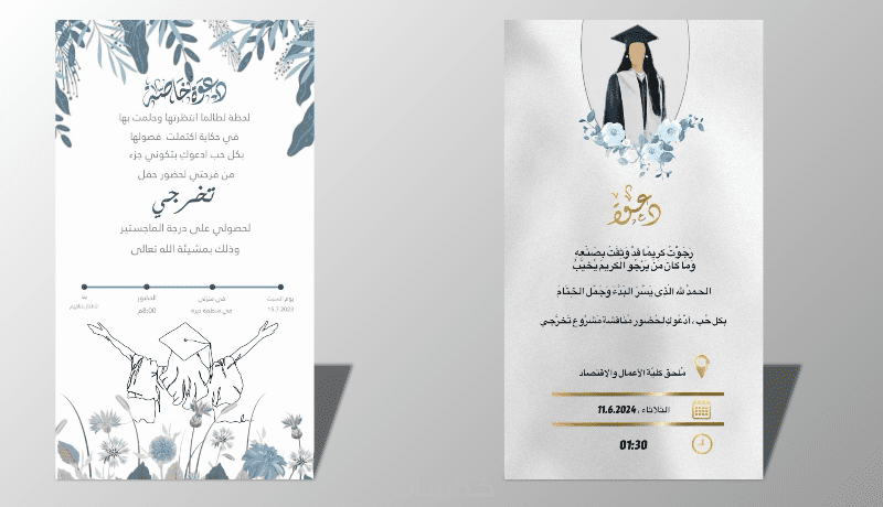 تصميم دعوة تخرج أنيقة وجذابة باسمك وتفاصيل مناسبتك