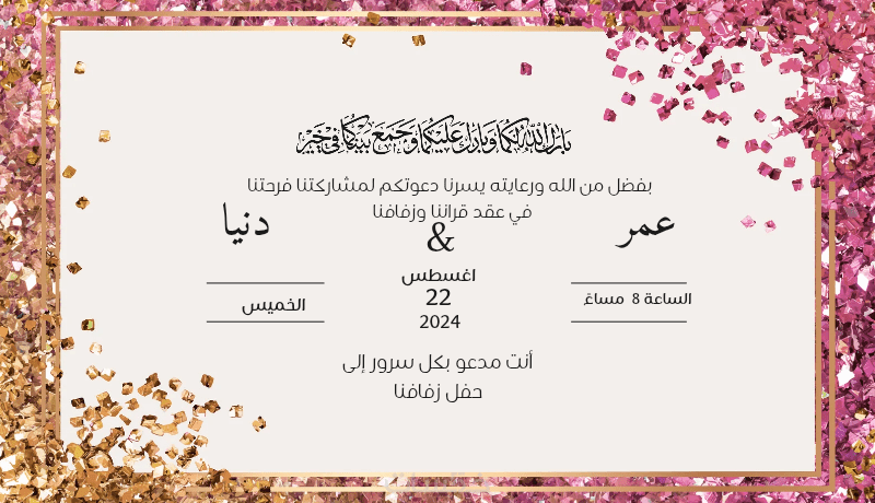 تصميم دعوة زفاف عقد قران او اي مناسبة الكترونية