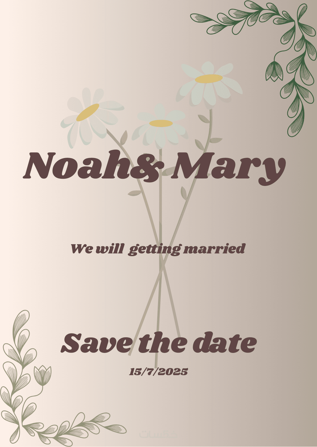 سأصمم لك دعوة زفاف أنيقة وجذابة قابلة للمشاركه الرقميه